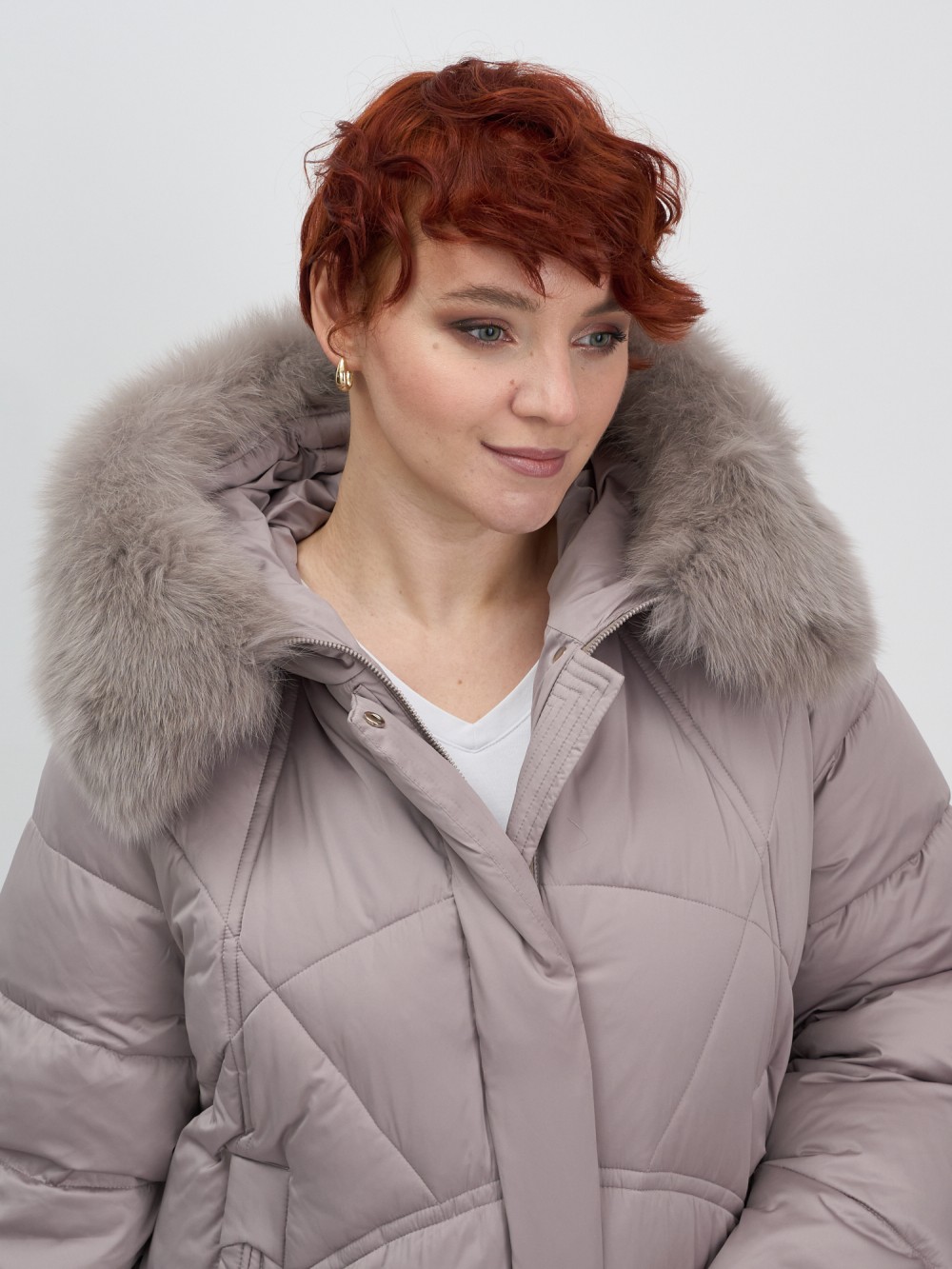 Изысканная палитра оттенков – глубокий черный, благородный темно-серый, насыщенный коричневый и утонченный светло-коричневый – прекрасно гармонирует с роскошным мехом песца. Удлиненный силуэт до колена в сочетании с натуральным мехом создает безупречные пропорции, делая фигуру более стройной и грациозной.