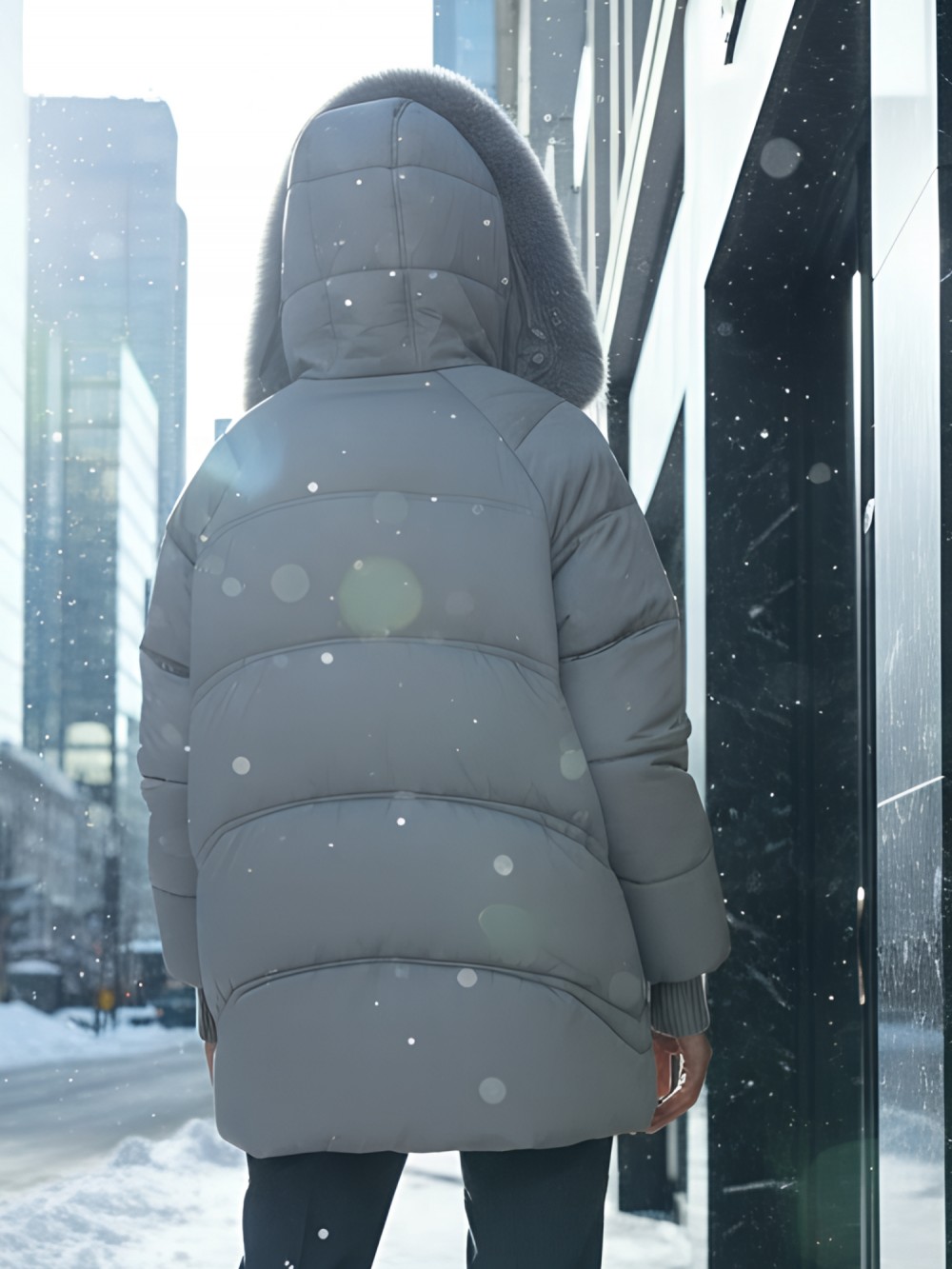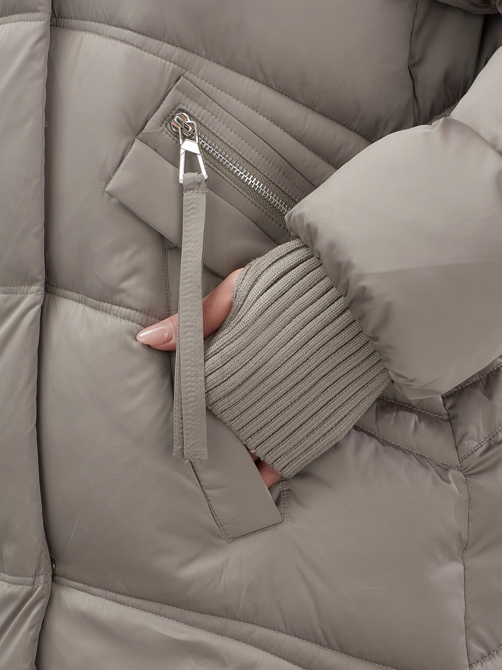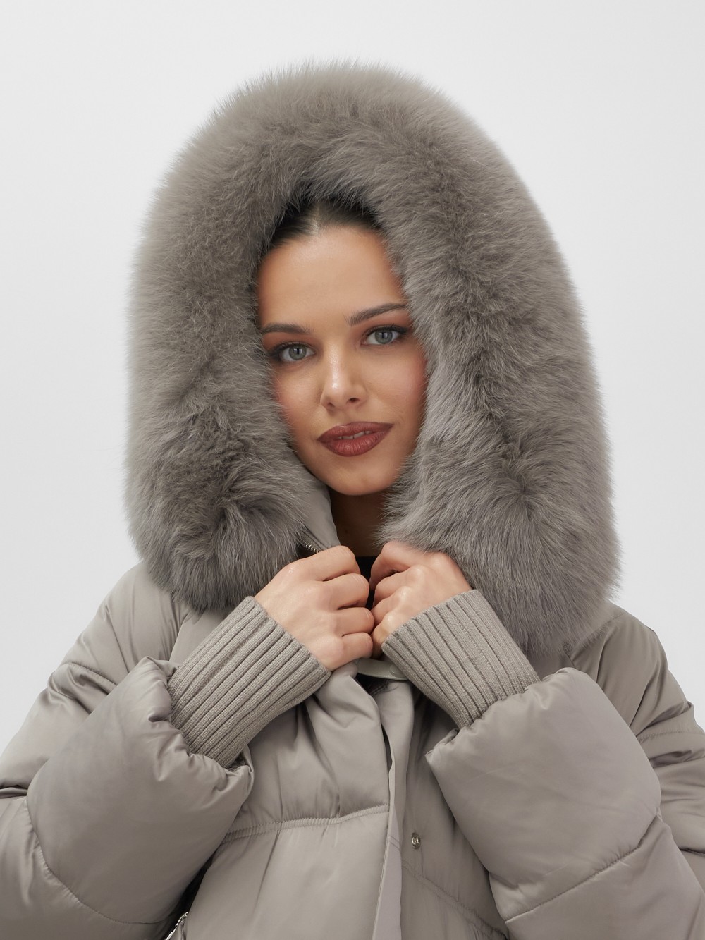 Пять трендовых оттенков сезона осень-зима 2025 – глубокий черный, благородный коричневый, нежный светло-коричневый, изысканный темно-зеленый и элегантный бежевый – идеально сочетаются с роскошным мехом песца. Удлиненный силуэт до колена и свободный крой создают идеальные пропорции для размеров 46-54.