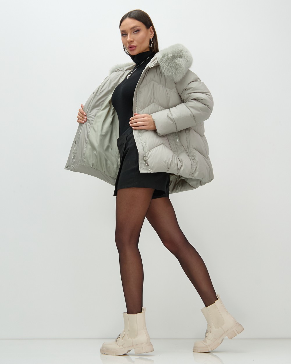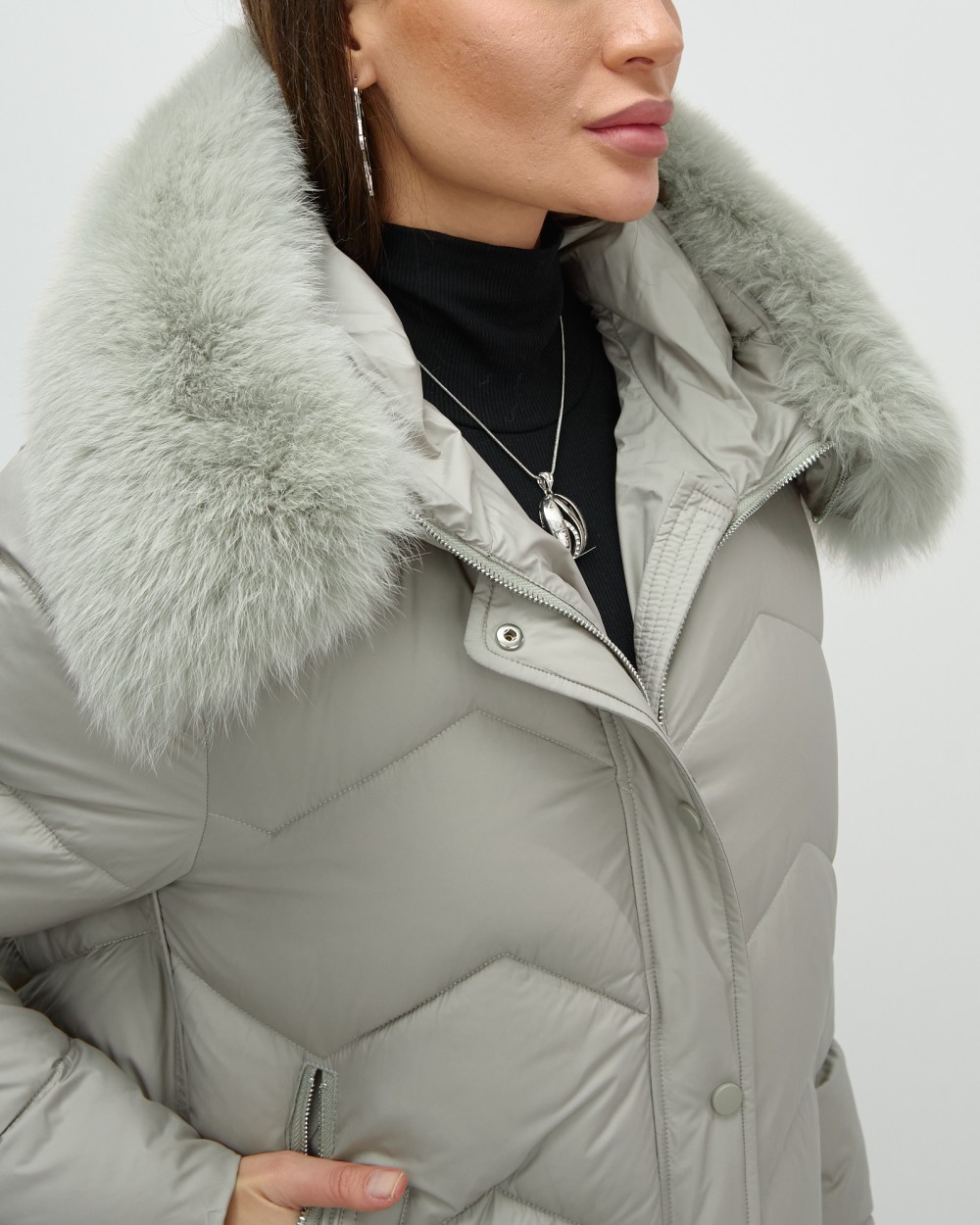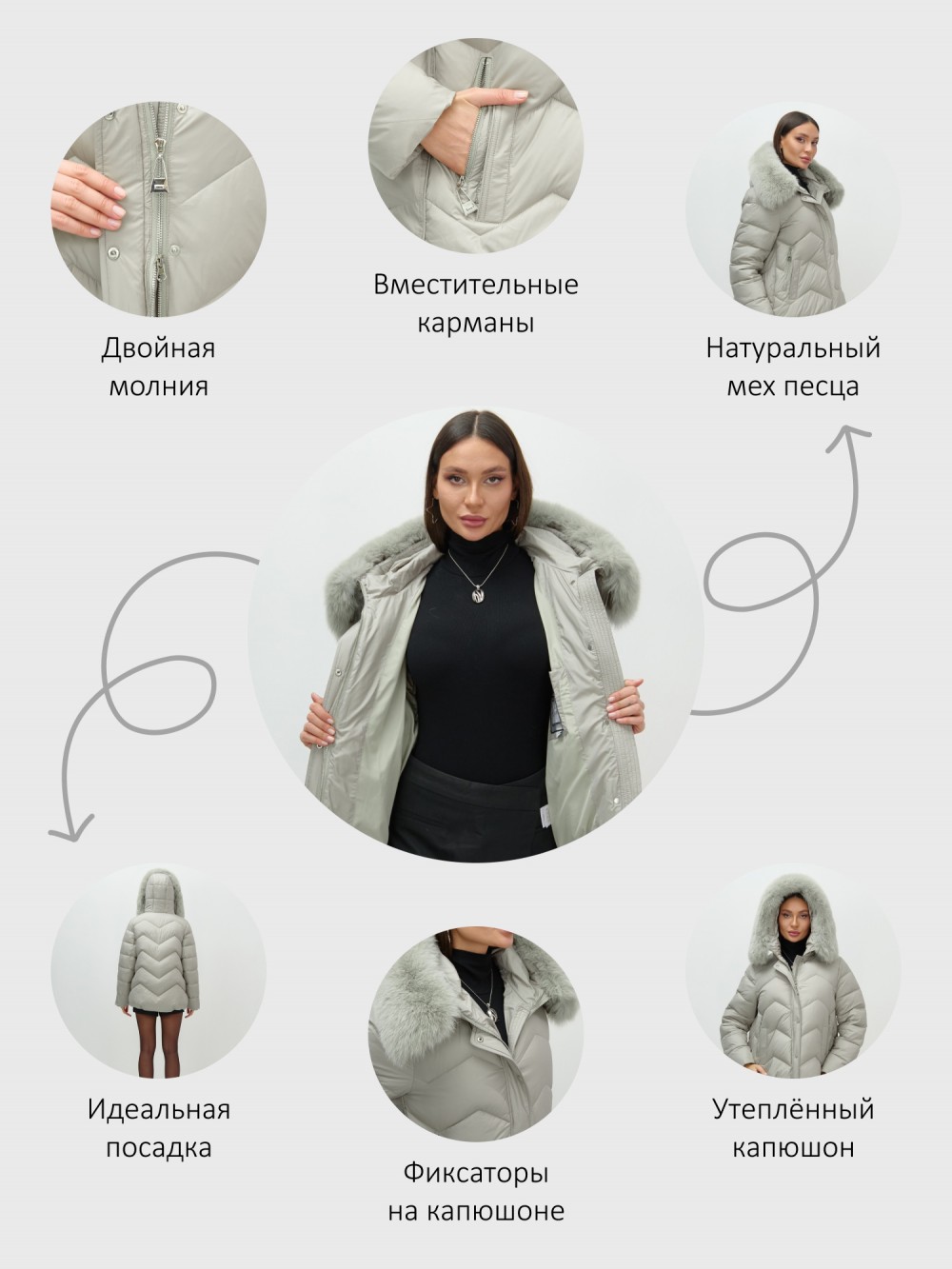 Утеплитель плотностью 200 г/м² обеспечивает комфорт при температурах от +5° до -20°C. Роскошный натуральный мех песца обрамляет лицо, создавая неповторимый образ городской леди. Безупречный крой подчеркивает силуэт, оставляя свободу движений.