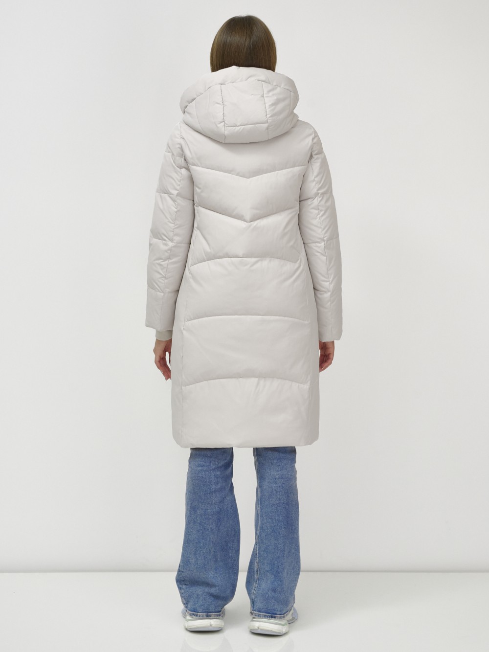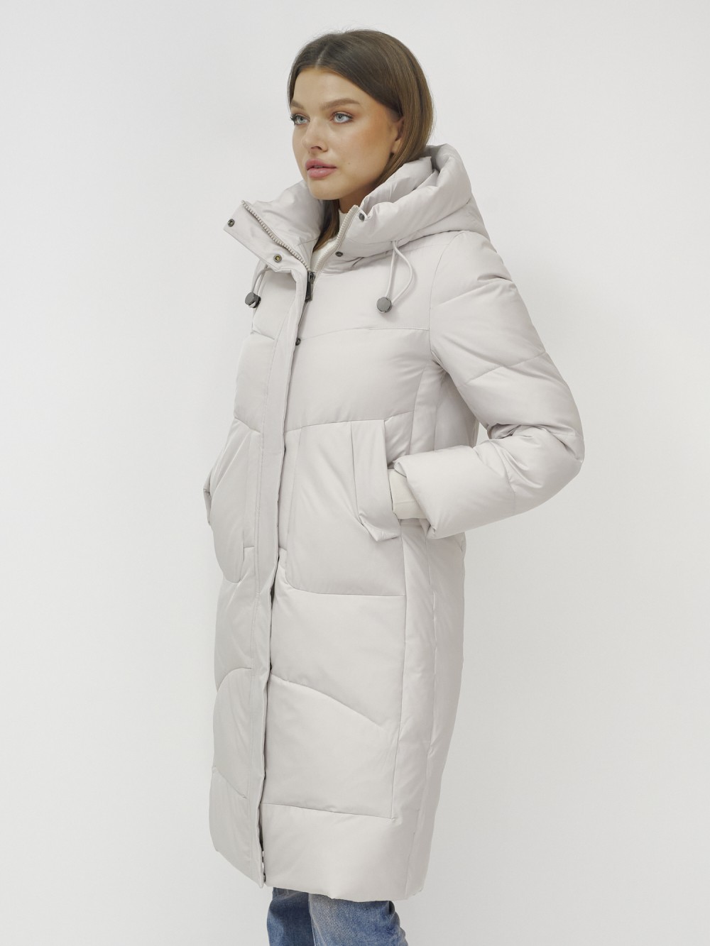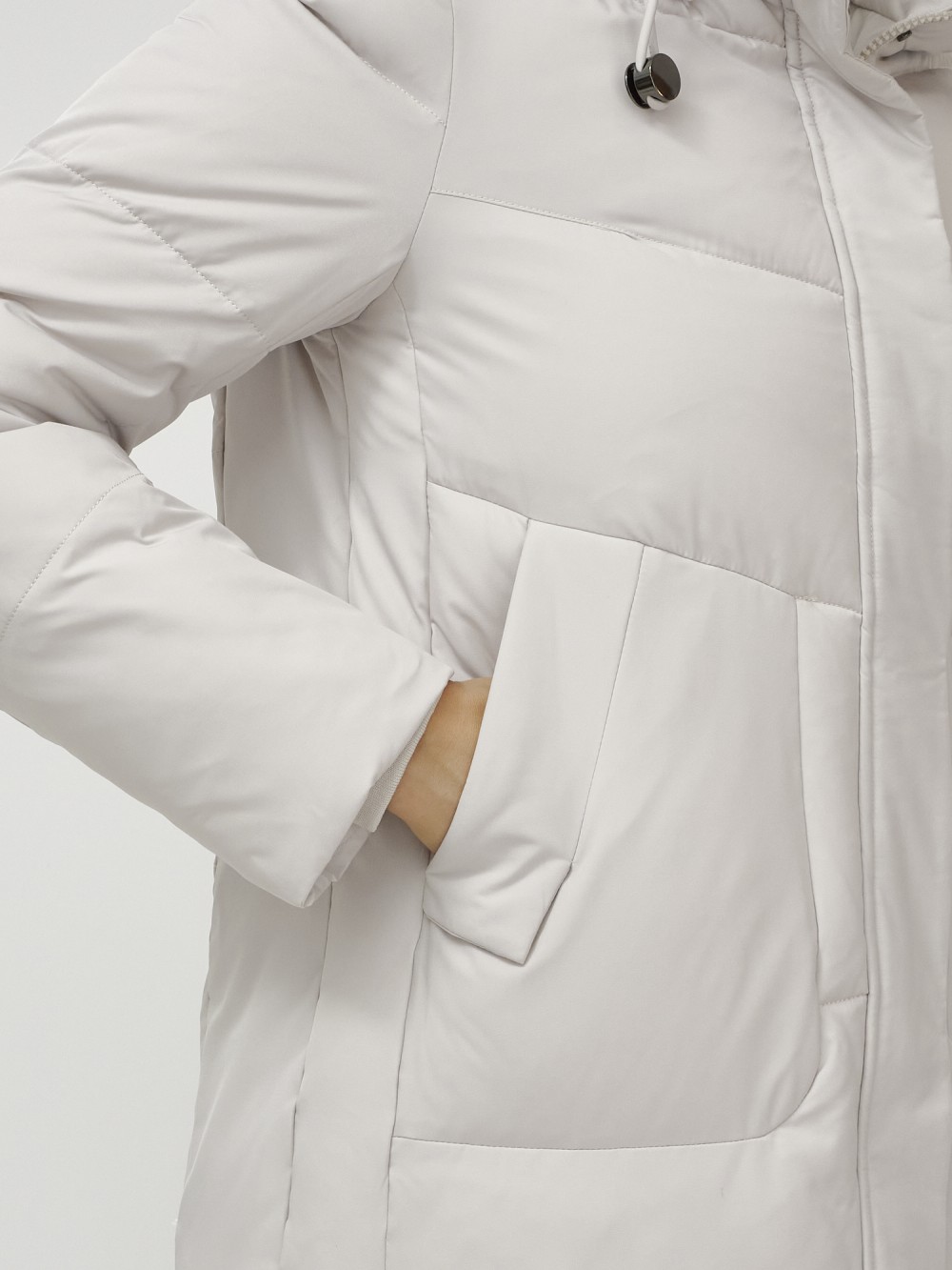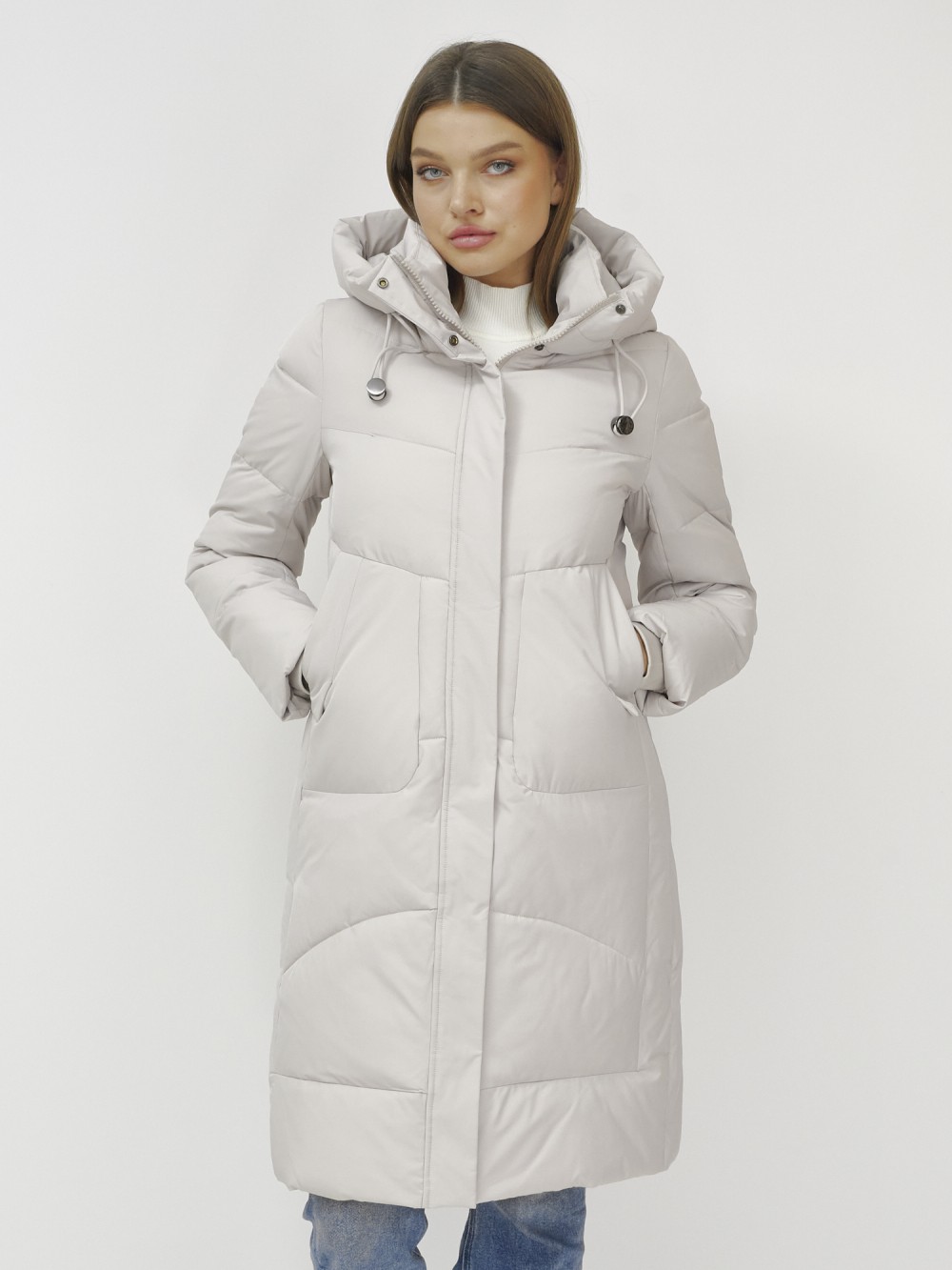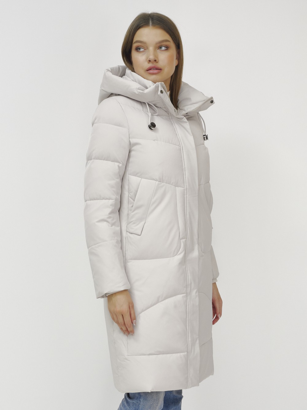 Куртка зимняя женская удлиненная УЦЕНКА бежевого цвета 0909B