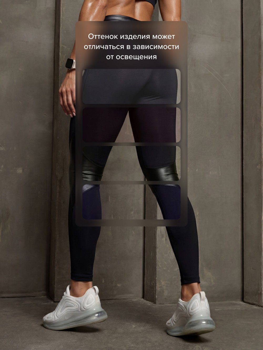 Контрастные вставки визуально формируют силуэт, подчеркивают линии бедер и создают более динамичный образ. Высокая посадка фиксирует талию и обеспечивает уверенность в движении.