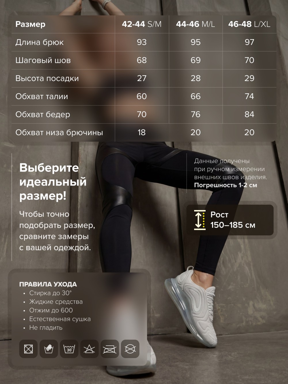 Плотная эластичная ткань обеспечивает комфортную посадку, поддержку и аккуратный моделирующий эффект. Материал не просвечивает, сохраняет форму и подходит как для тренировок, так и для повседневной носки.