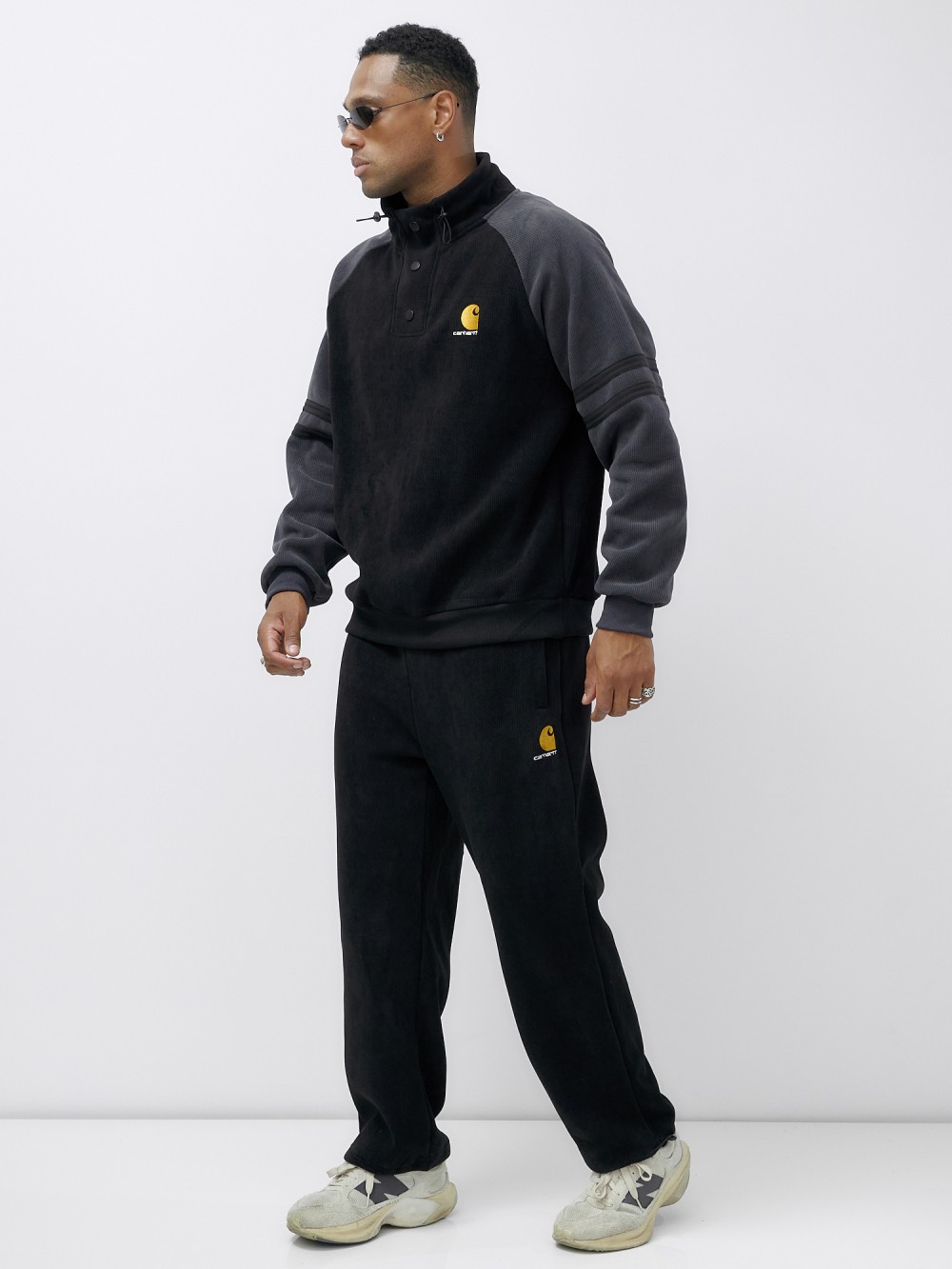 Олимпийка мужская демисезонная на флисе УЦЕНКА черного цвета 0893Ch