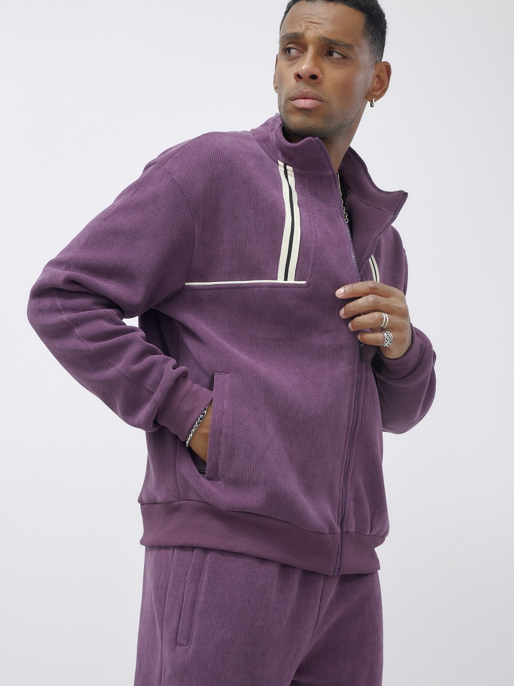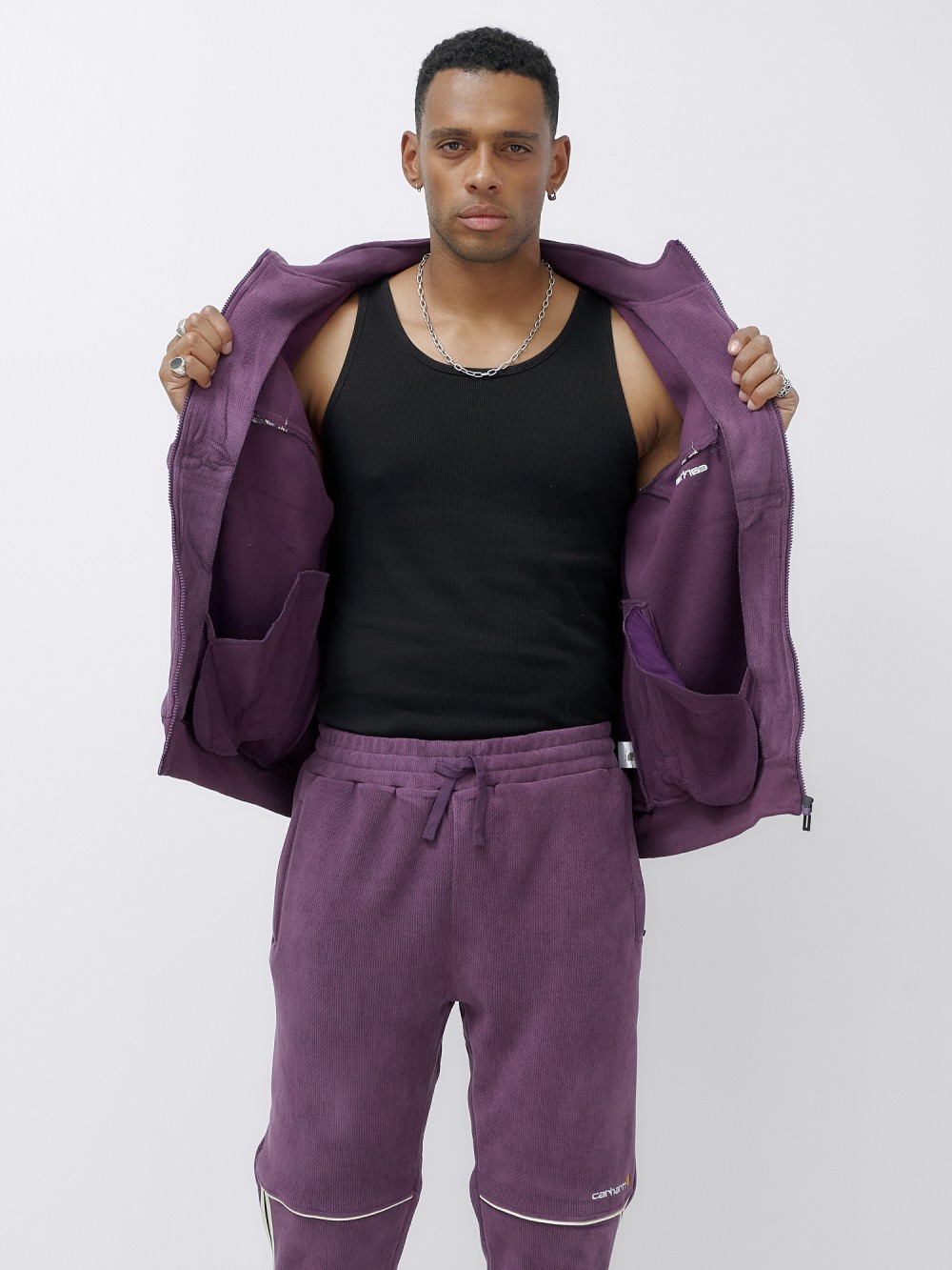 Олимпийка мужская демисезонная на флисе УЦЕНКА фиолетового цвета 0873F