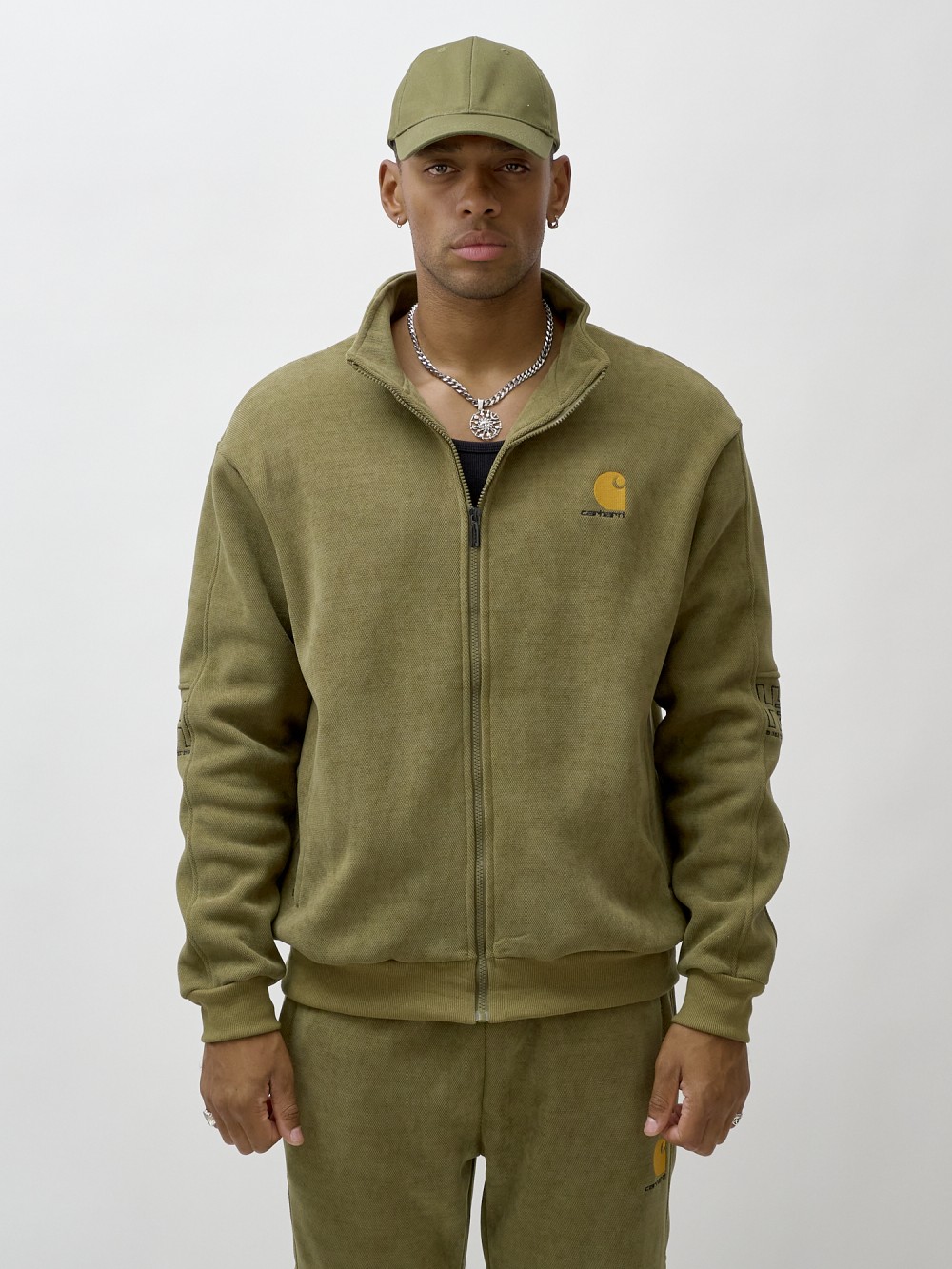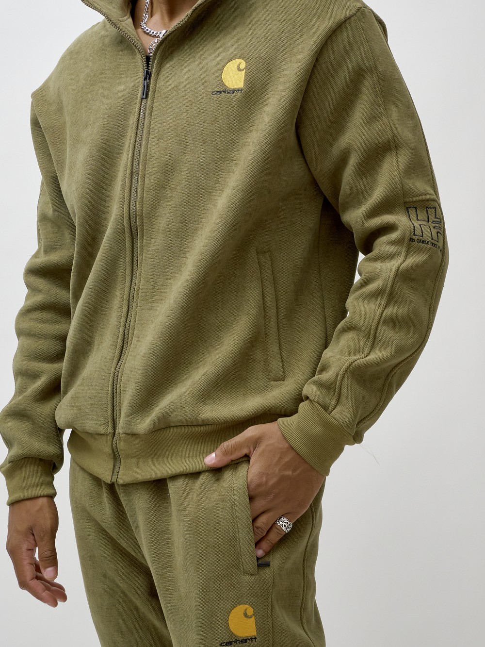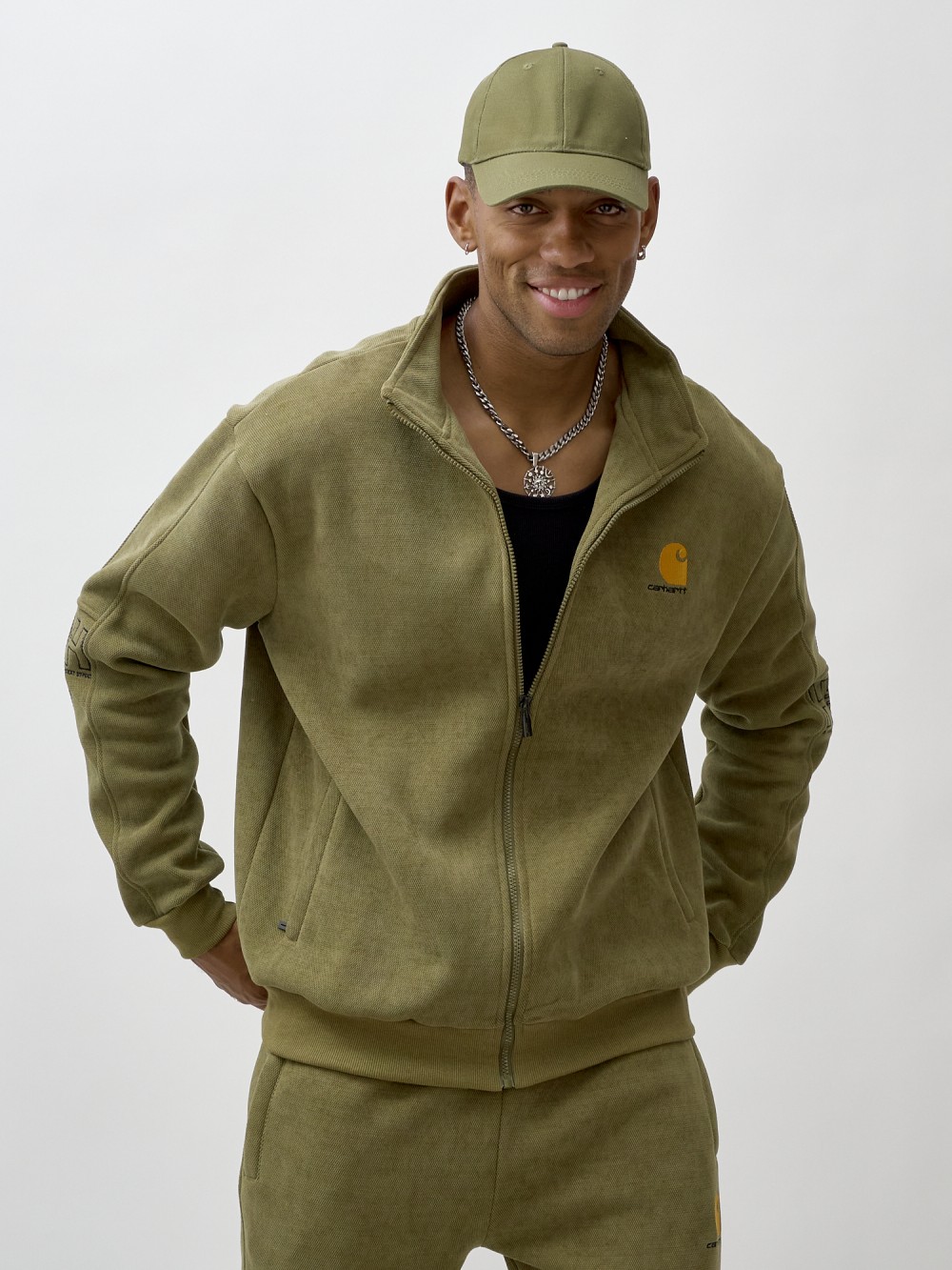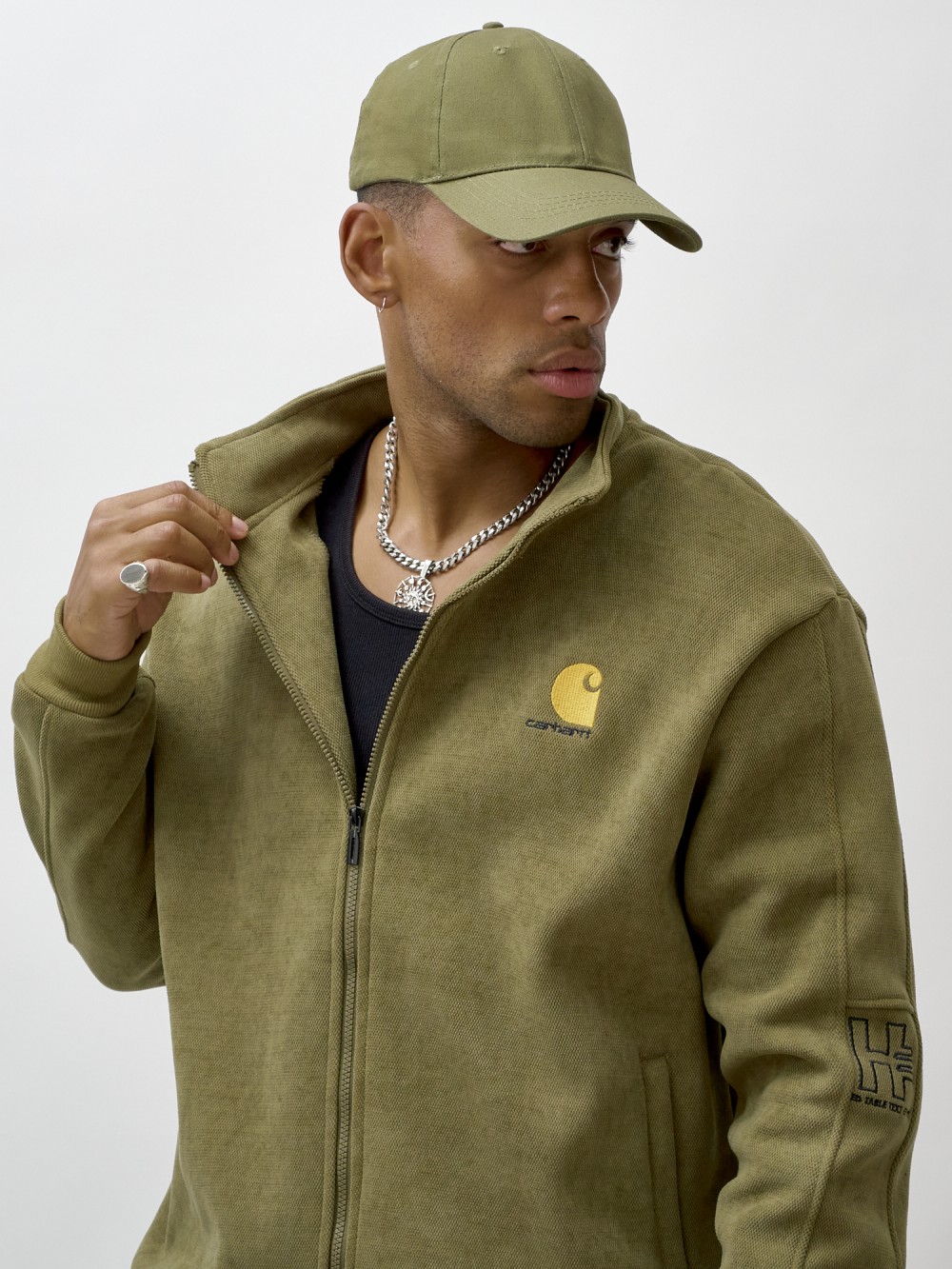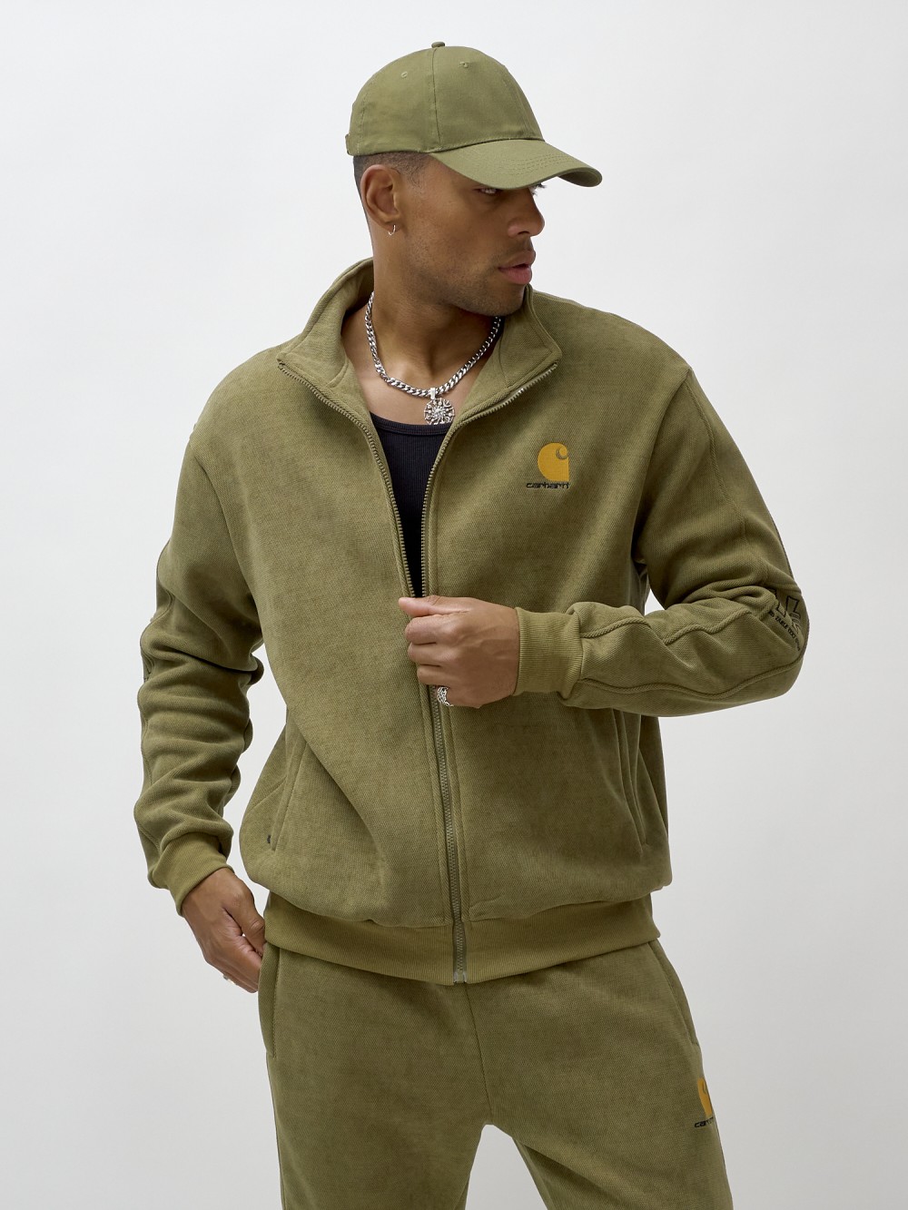Олимпийка мужская демисезонная на флисе УЦЕНКА хаки цвета 0877Kh