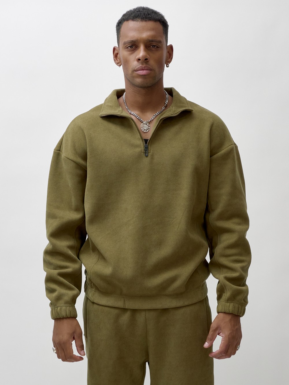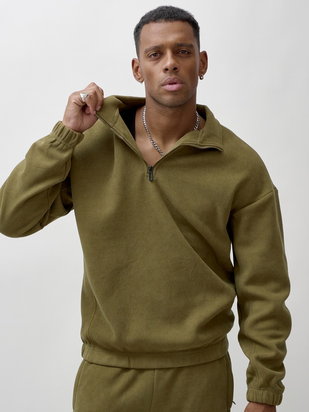 Олимпийка мужской демисезонный на флисе УЦЕНКА хаки цвета 0876Kh