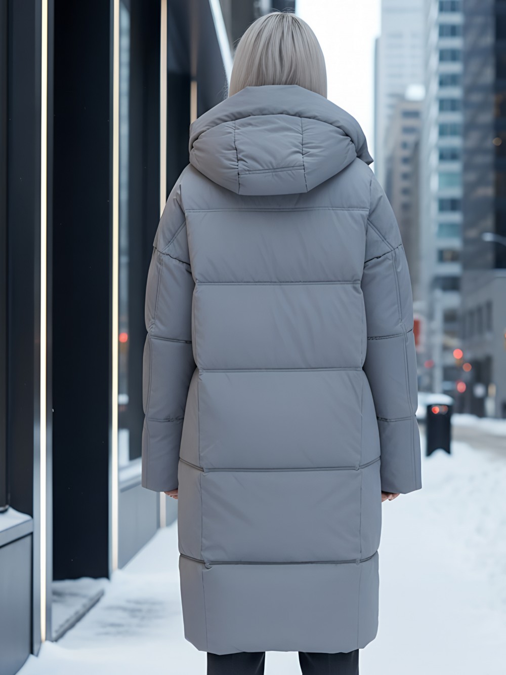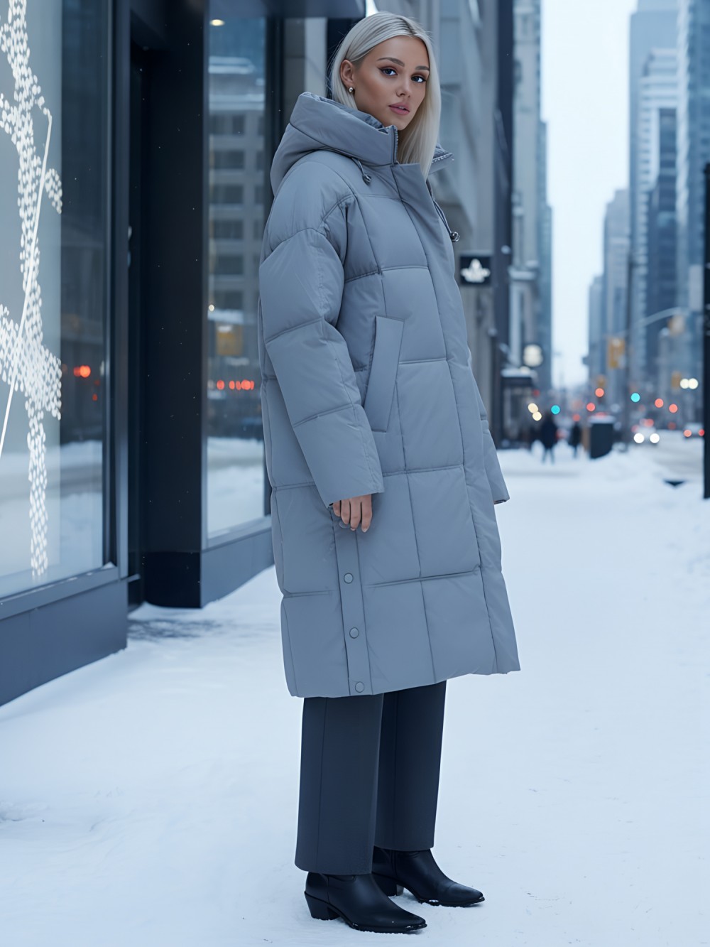— Длина до колена: Идеальная длина для защиты от холода и создания элегантного силуэта.