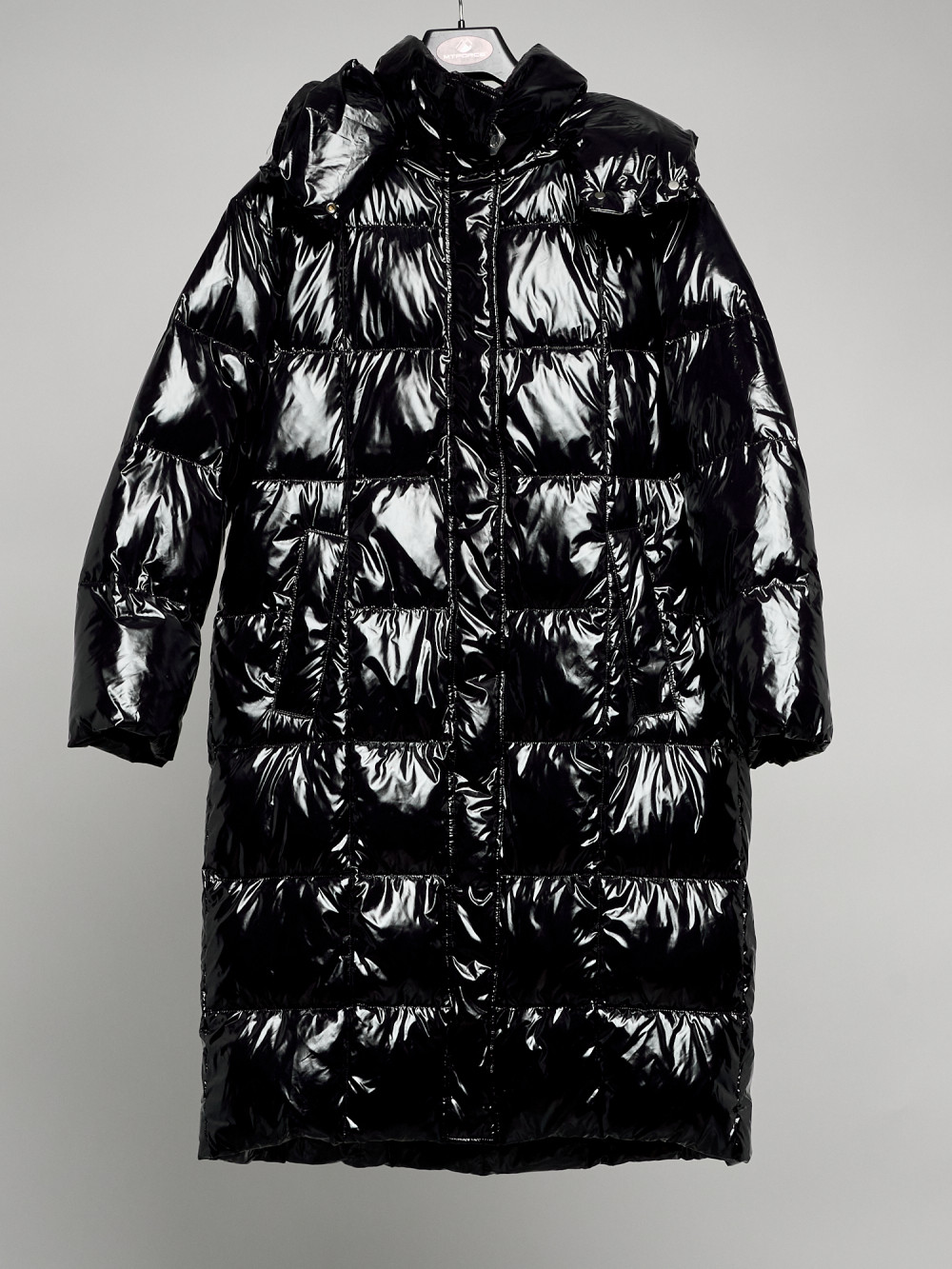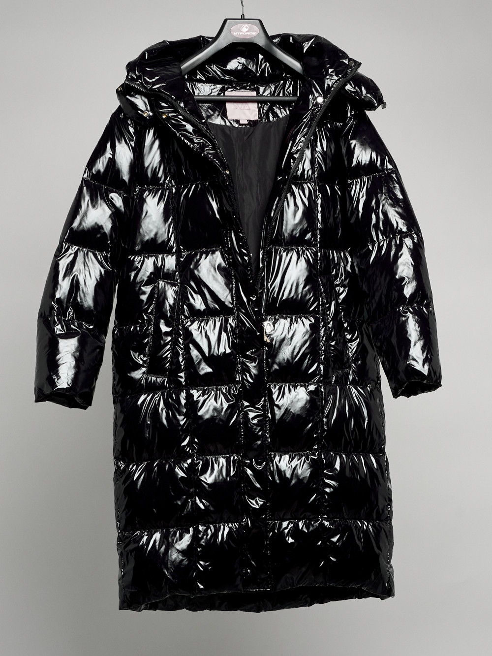 Пальто утепленное с капюшоном зимнее женское УЦЕНКА темно-синего цвета 0465TS