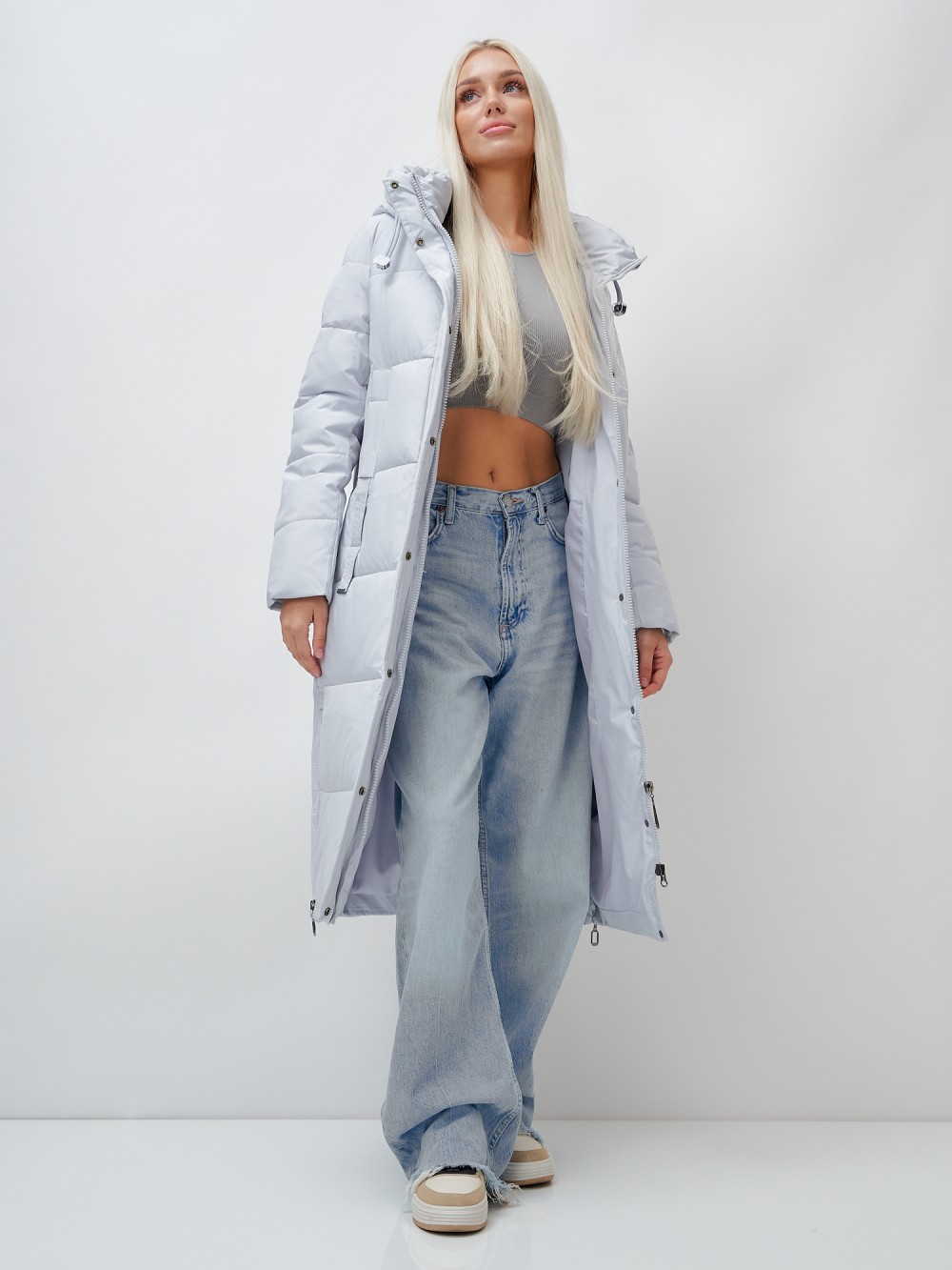 Пальто утепленное зимнее женское УЦЕНКА светло-серого цвета 0911SS