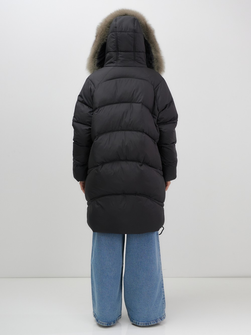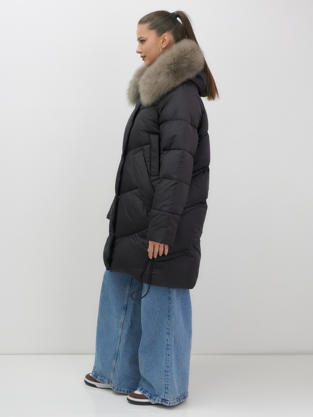 Безупречное качество каждого элемента: двойная молния под защитным клапаном, регулируемые фиксаторы на капюшоне и по низу изделия, утягивающий силуэт для идеальной посадки. Роскошная съемная опушка из натурального песца создает неповторимый образ. Первоклассное качество меха подчеркивает премиальность модели.