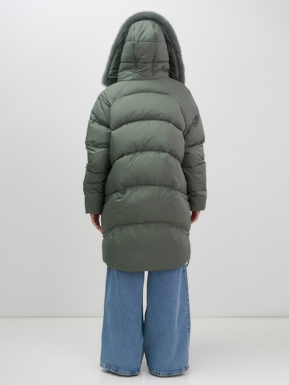 Безупречное качество каждого элемента: двойная молния под защитным клапаном, регулируемые фиксаторы на капюшоне и по низу изделия, утягивающий силуэт для идеальной посадки. Роскошная съемная опушка из натурального песца создает неповторимый образ. Первоклассное качество меха подчеркивает премиальность модели.