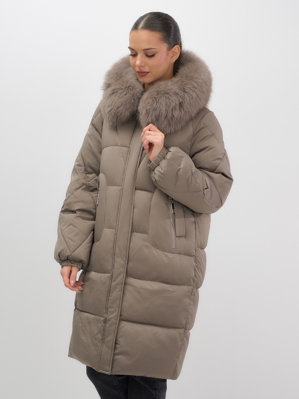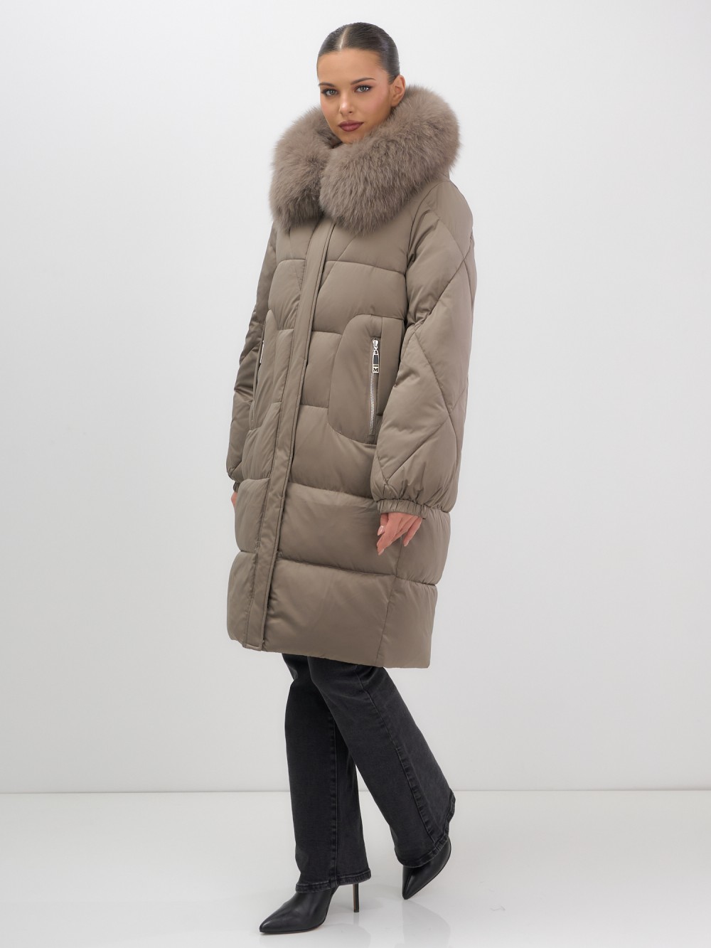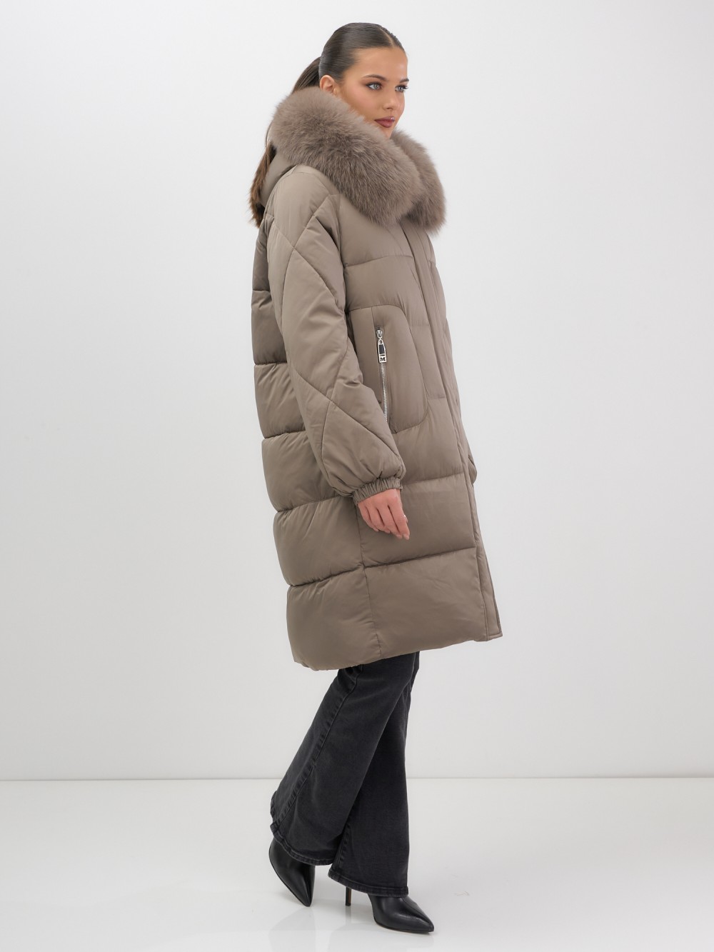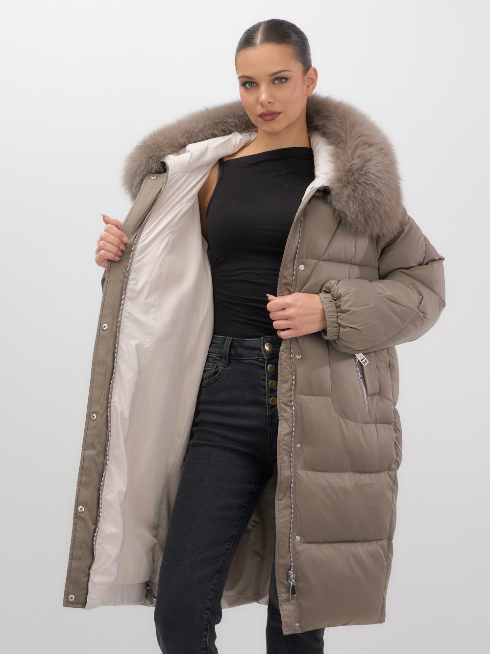 Непревзойденное качество исполнения: двойная молния с защитным клапаном на кнопках, инновационная система фиксаторов на капюшоне и по низу изделия, утягивающий силуэт для безупречной посадки. Изысканная съемная опушка из натурального песца создает роскошный образ. Первоклассное качество меха – символ престижа.