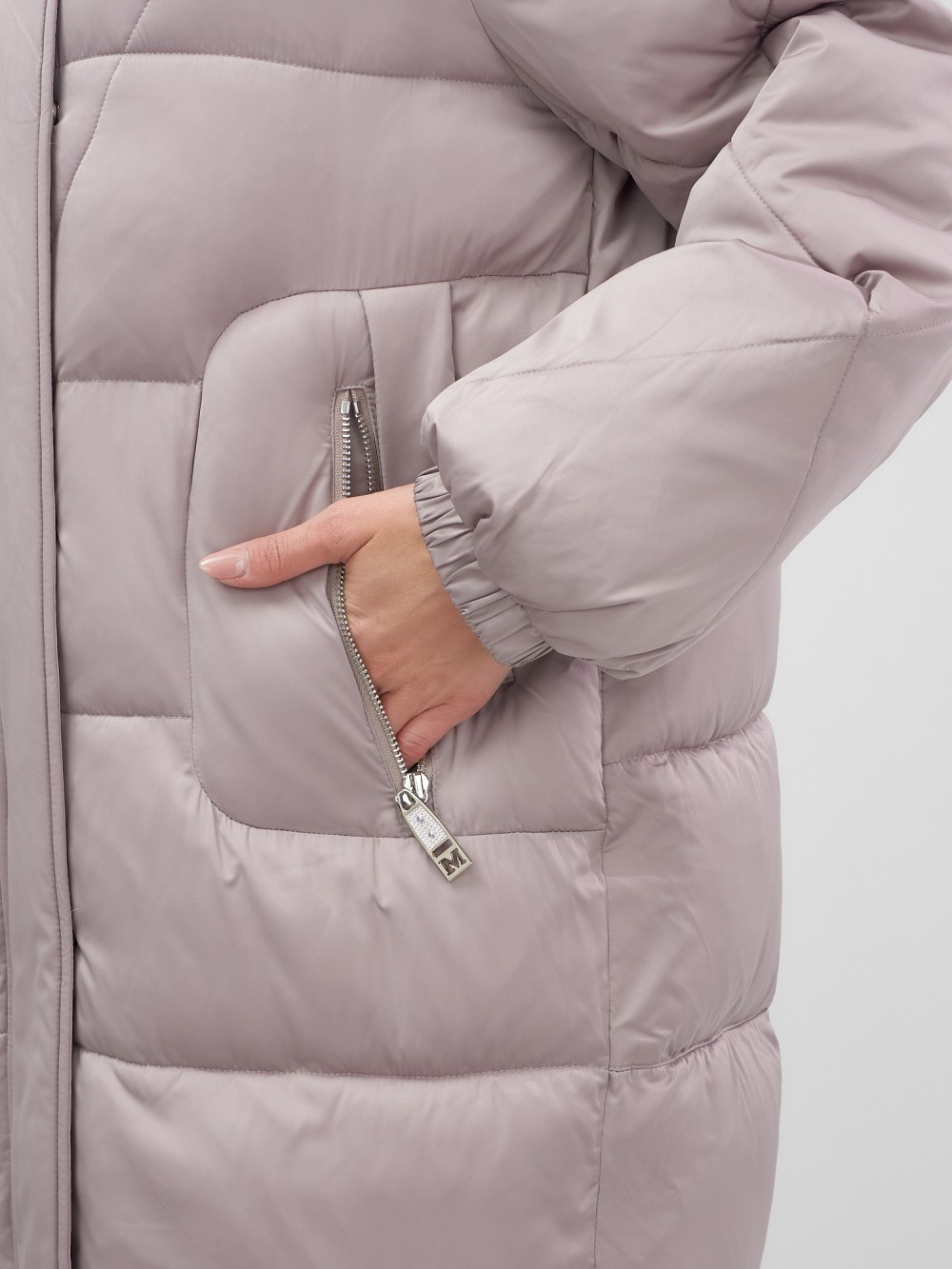 Пальто зимнее утепленное с мехом и капюшоном тренд светло-коричневого цвета 7629SK