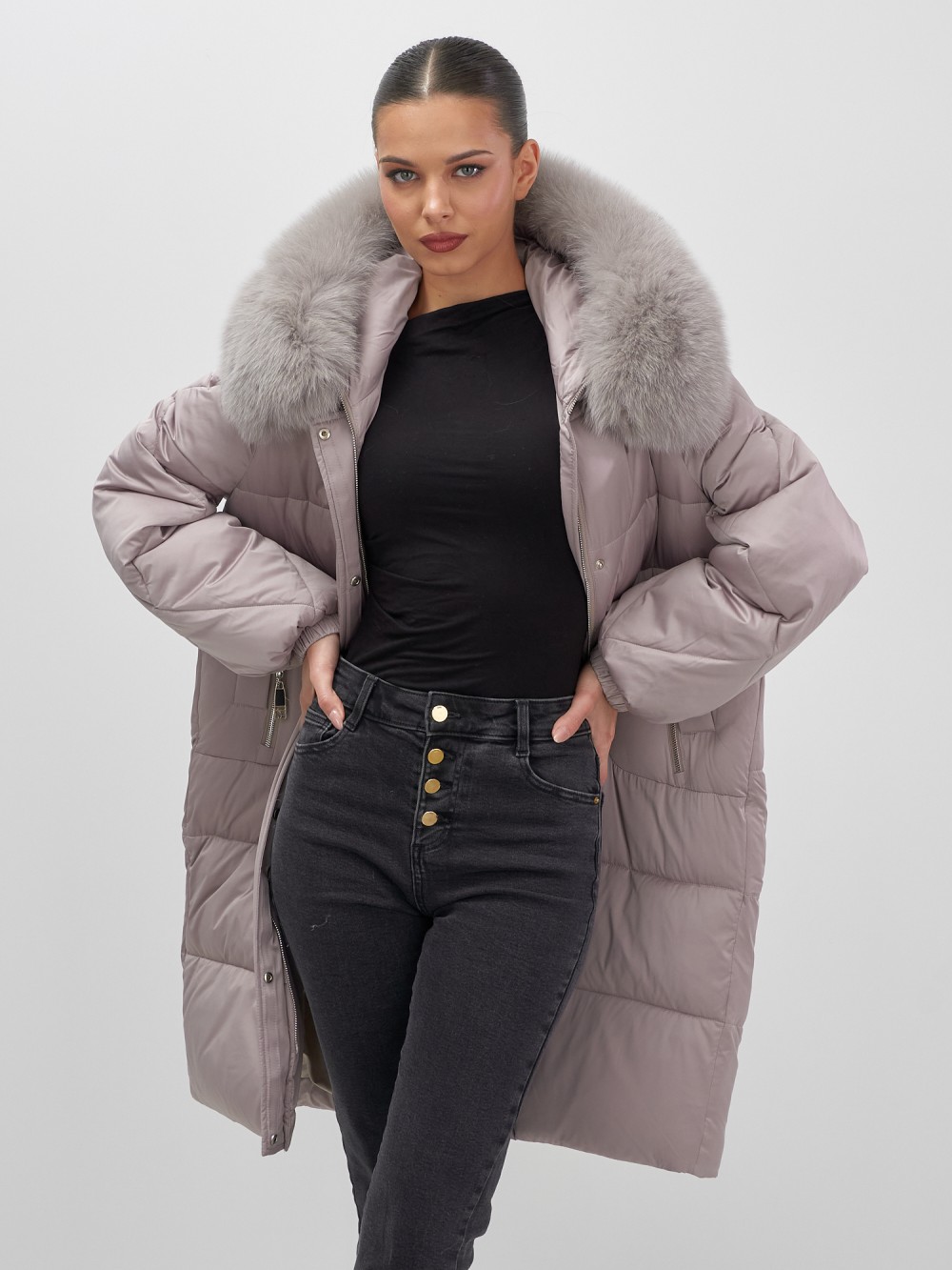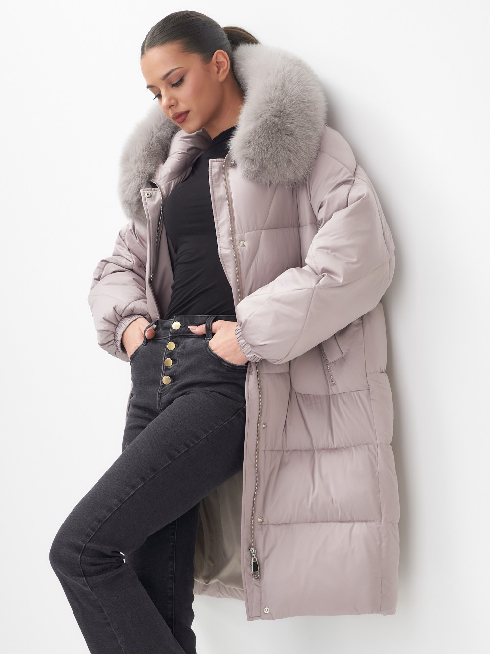 Непревзойденное качество исполнения: двойная молния с защитным клапаном на кнопках, инновационная система фиксаторов на капюшоне и по низу изделия, утягивающий силуэт для безупречной посадки. Изысканная съемная опушка из натурального песца создает роскошный образ. Первоклассное качество меха – символ престижа.
