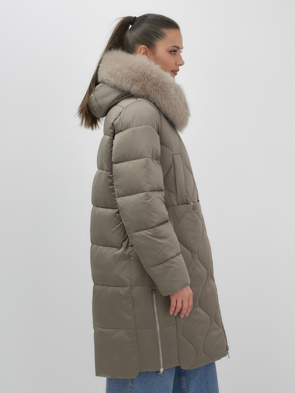 Каждая деталь воплощает премиальное качество: проклеенные швы, изысканные заклепки, эргономичный вырез для пальца на манжетах, функциональные прорезные и накладные карманы на кнопках. Съемная опушка из натурального песца создает неповторимый образ. Первоклассное качество меха подчеркивает статус владелицы.