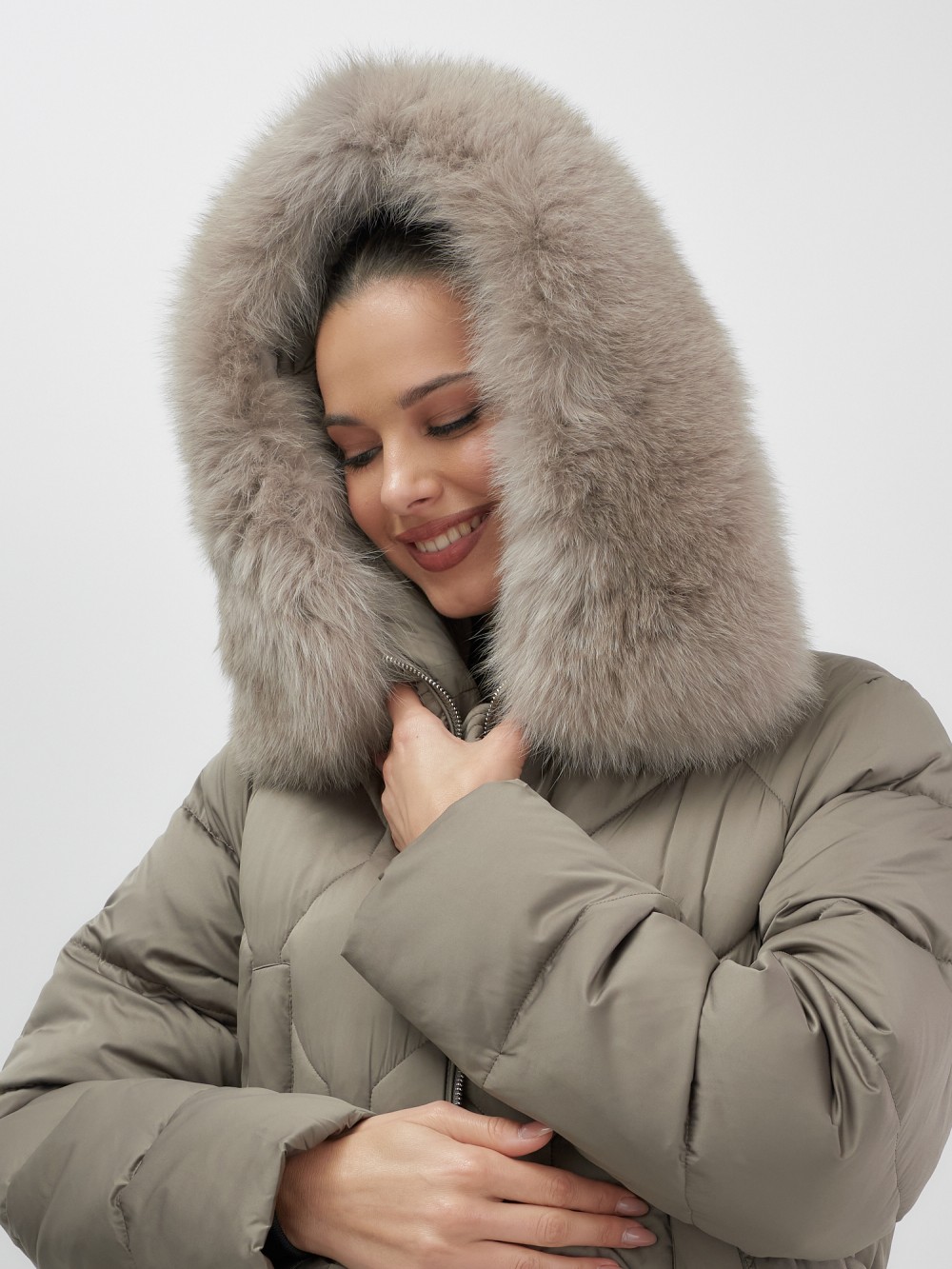 Пальто зимнее утепленное с мехом и капюшоном тренд темно-коричневого цвета 7753TK