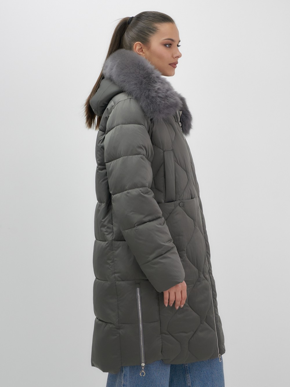 Каждая деталь воплощает премиальное качество: проклеенные швы, изысканные заклепки, эргономичный вырез для пальца на манжетах, функциональные прорезные и накладные карманы на кнопках. Съемная опушка из натурального песца создает неповторимый образ. Первоклассное качество меха подчеркивает статус владелицы.