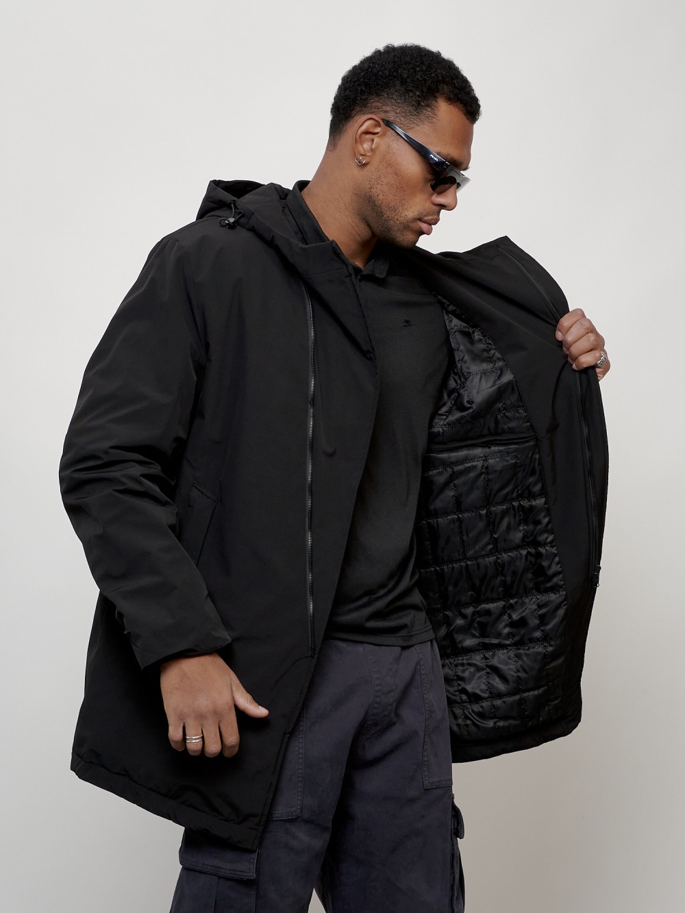 Парка косуха мужская демисезонная УЦЕНКА черного цвета 0944Ch