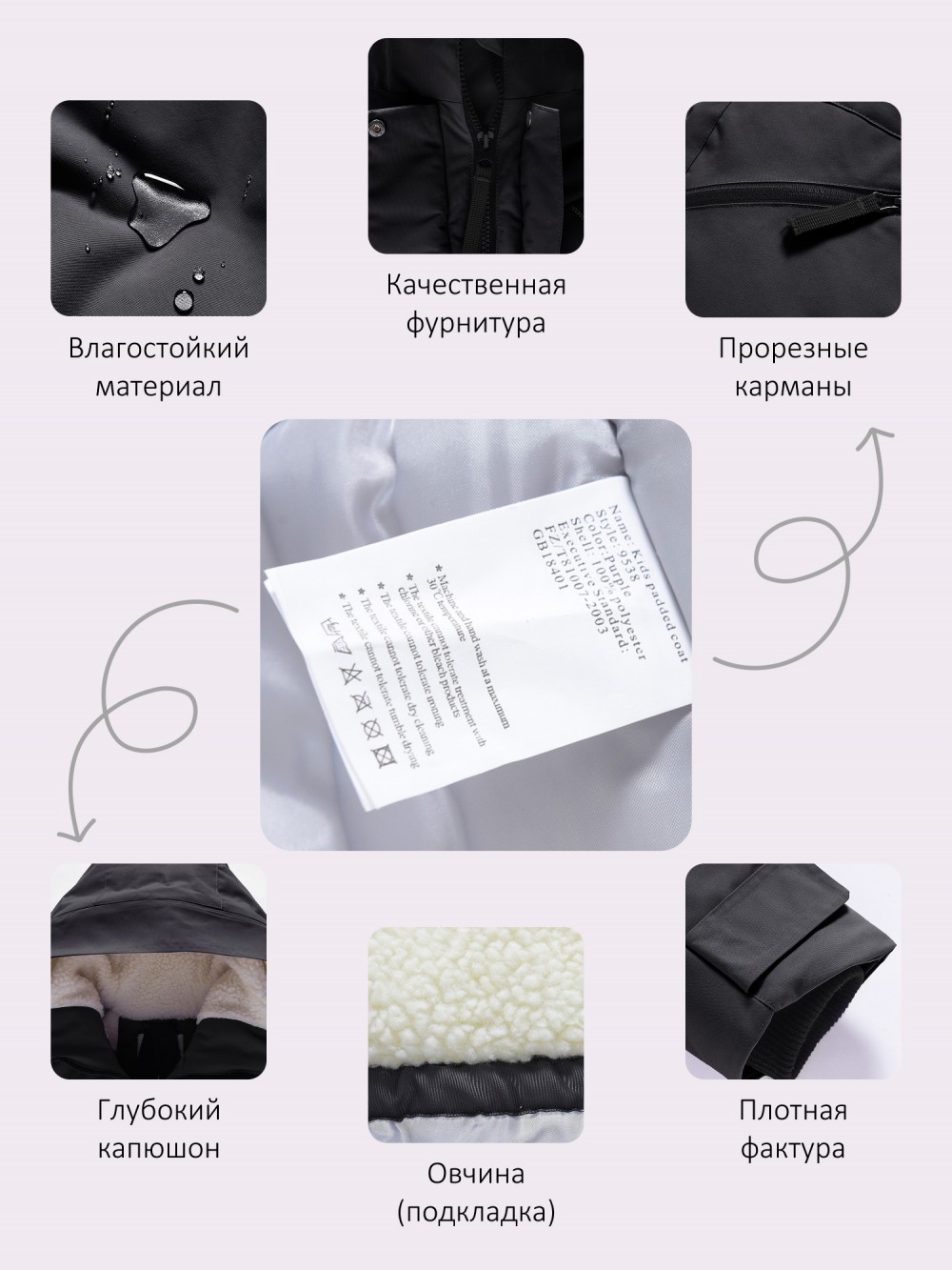 водоотталкивающий материал, гипоаллергенный материал, с разрезом, с начесом, светоотражающие детали, утягивающая модель