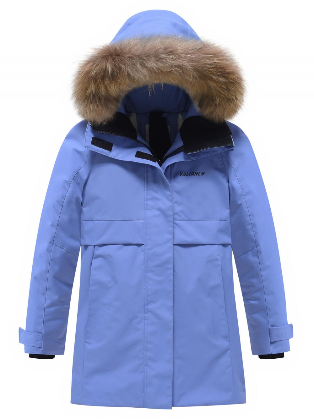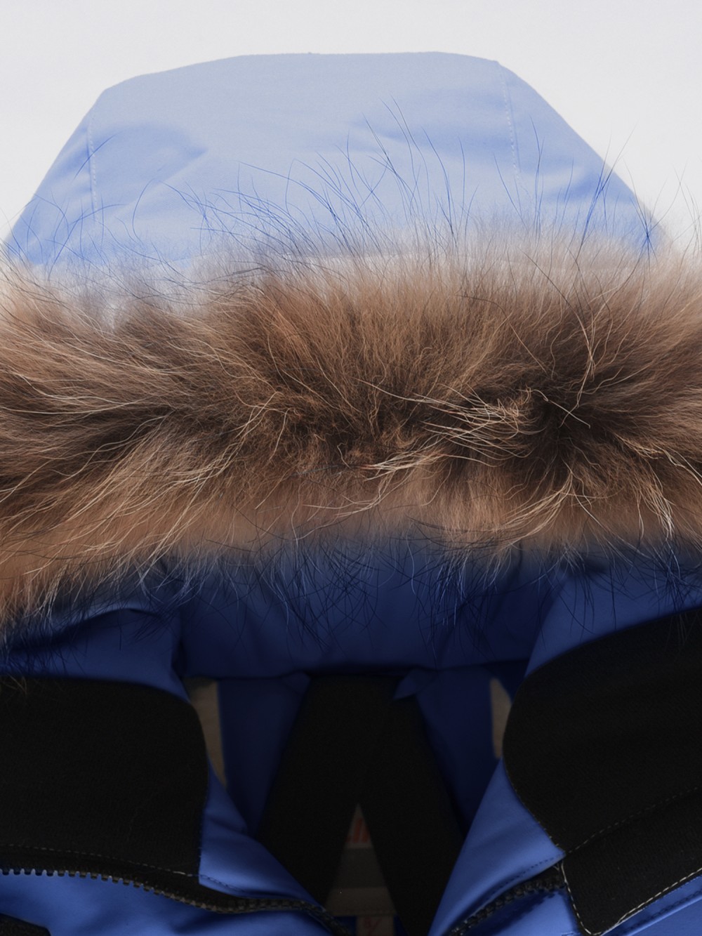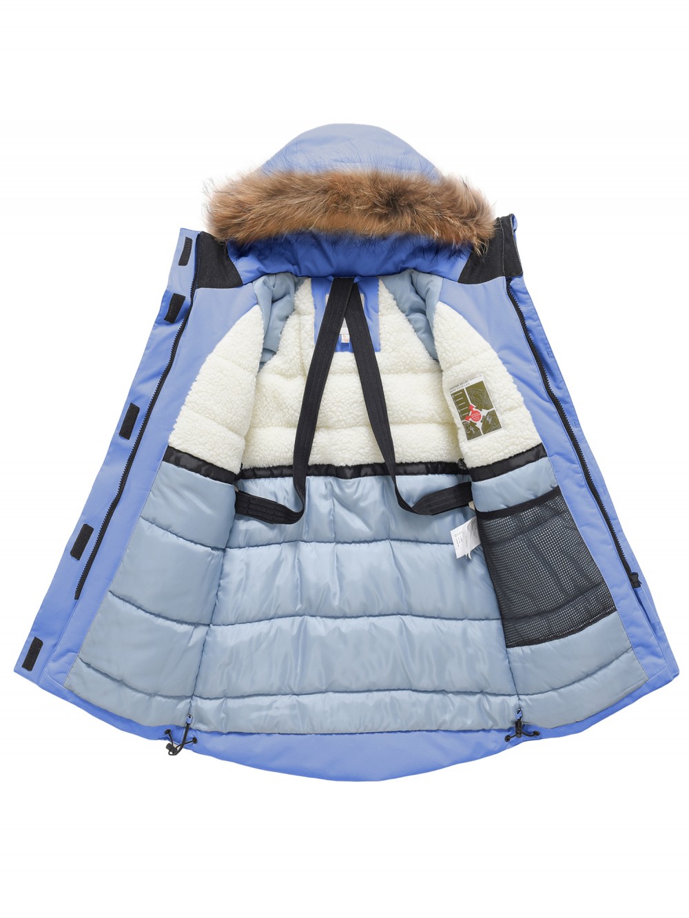 Парка зимняя подростковая для девочки с капюшоном и мехом василькового цвета 9534Vs