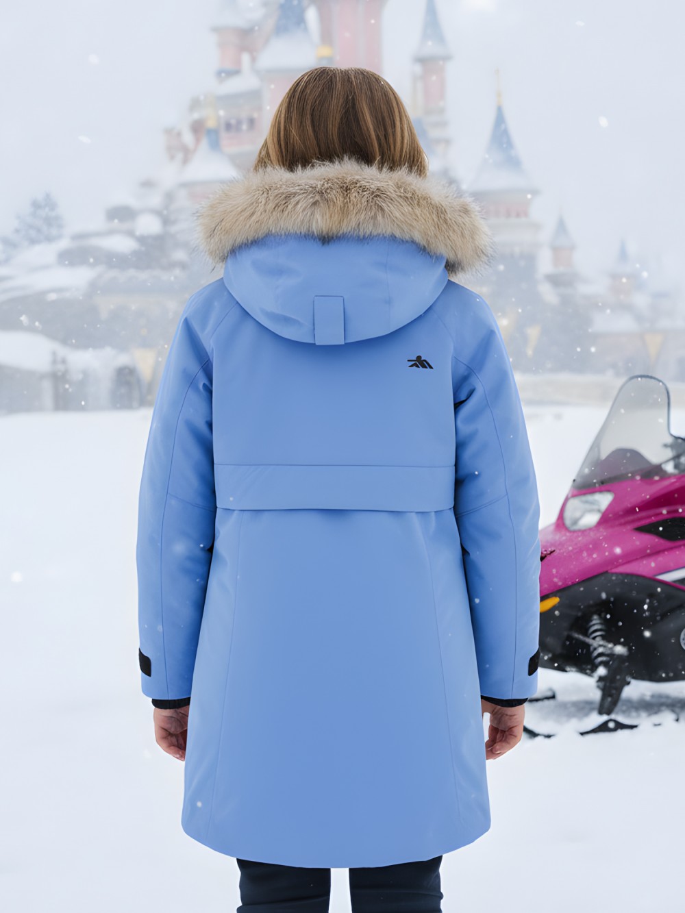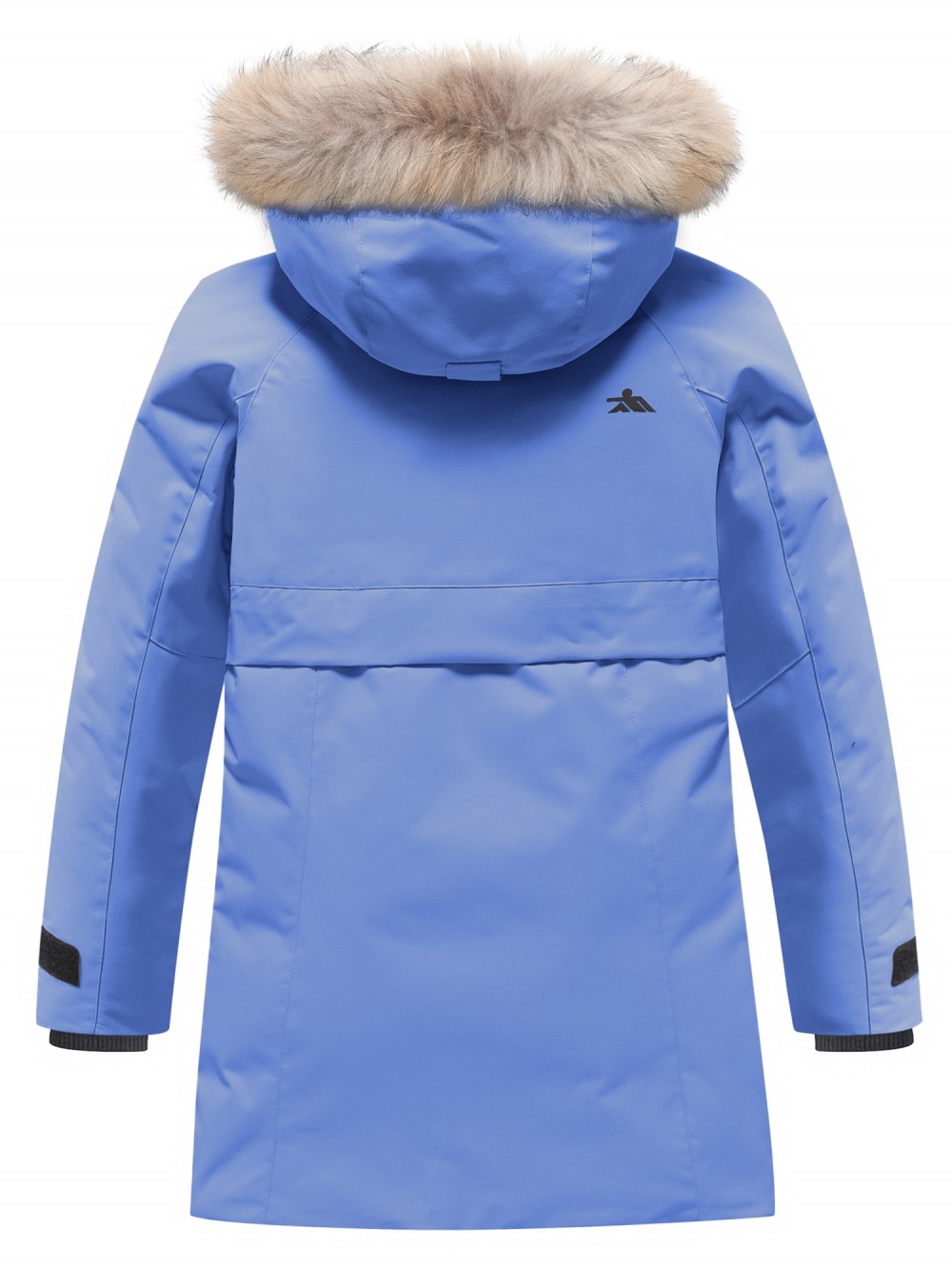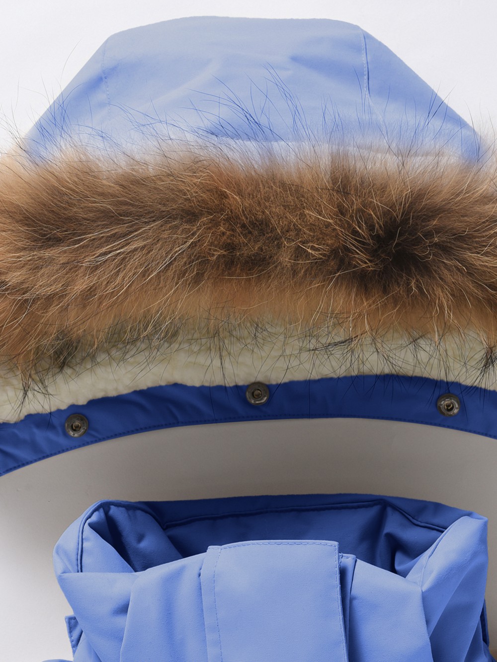 Капюшон с меховой отделкой надёжно защищает от ветра и снега, а фиксаторы на рукавах, по линии талии, на капюшоне и по низу парки помогают сохранить тепло и защитить ребёнка от продувания.