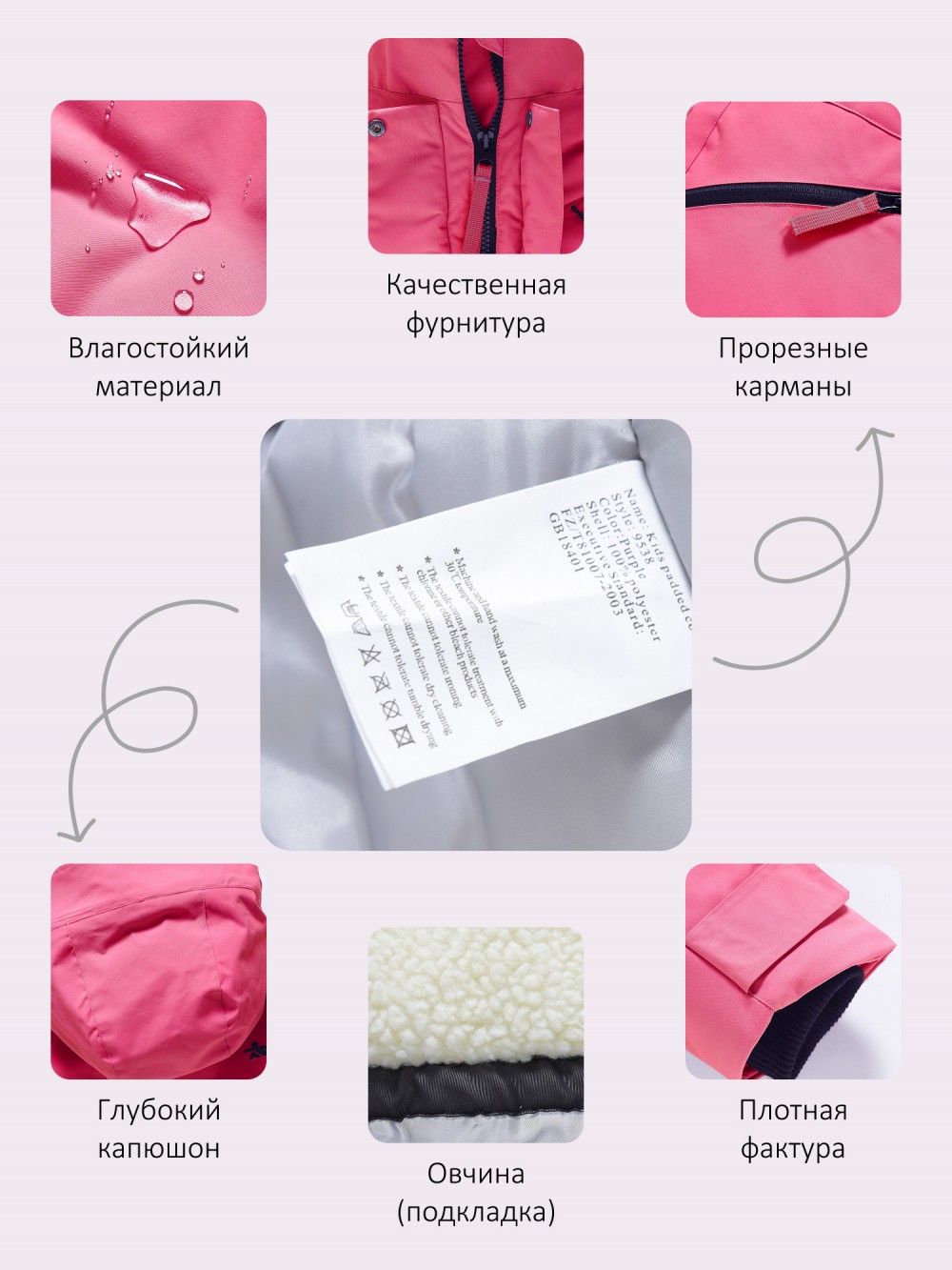 водоотталкивающий материал, гипоаллергенный материал, с разрезом, с начесом, светоотражающие детали, утягивающая модель