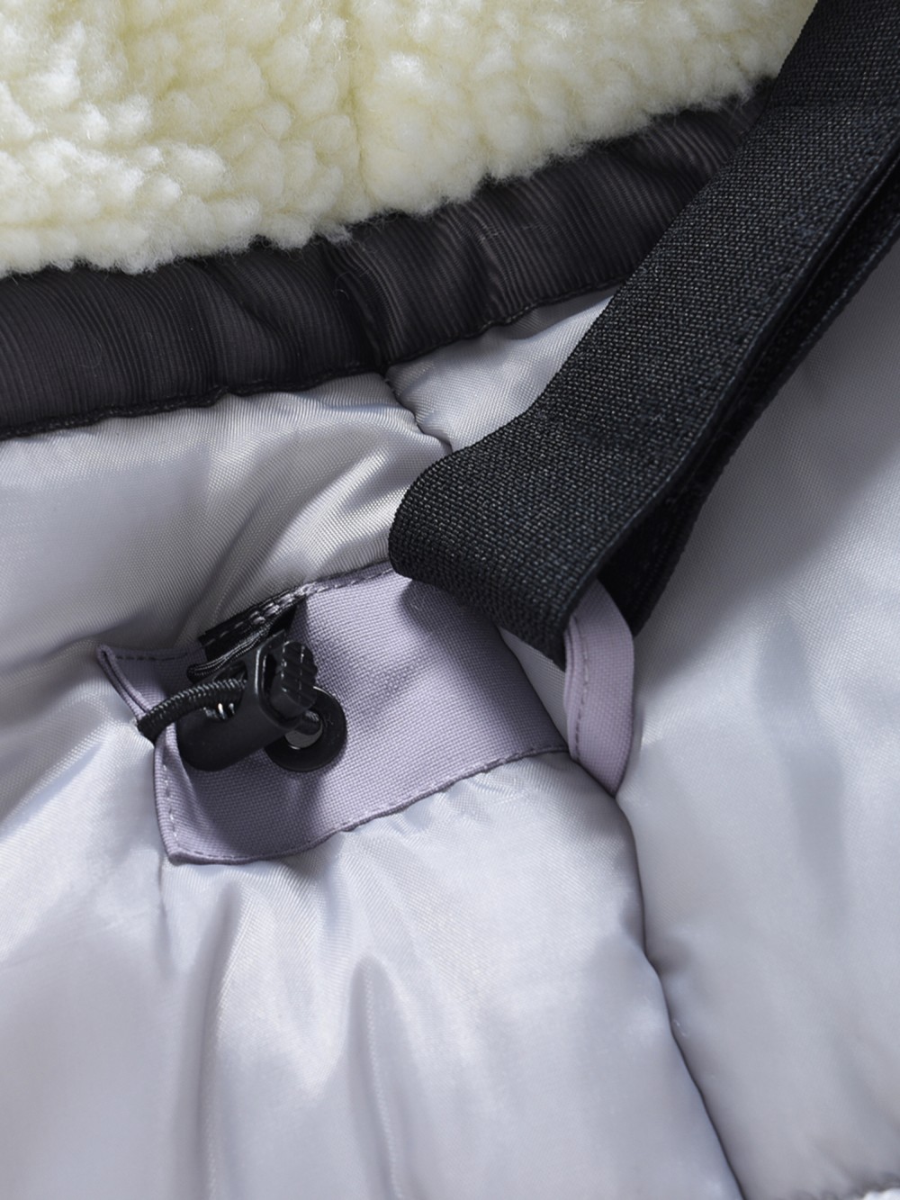 фиксаторы по низу, на капюшоне и по центру (в области талии) позволяют настроить силуэт — сделать его более приталенным или оставить прямым;