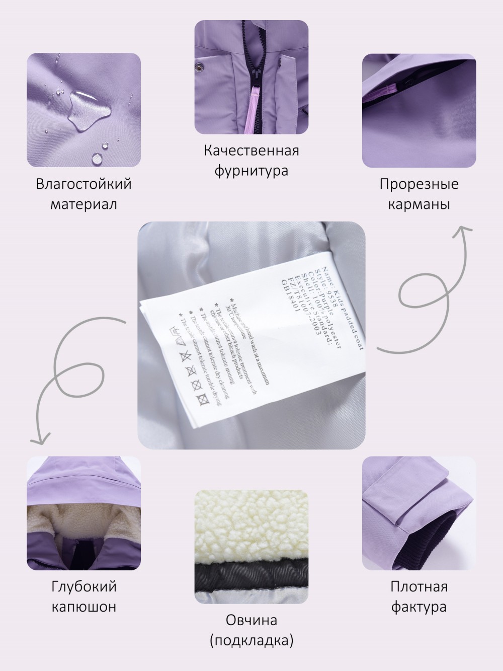 водоотталкивающий материал, гипоаллергенный материал, с разрезом, с начесом, светоотражающие детали, утягивающая модель