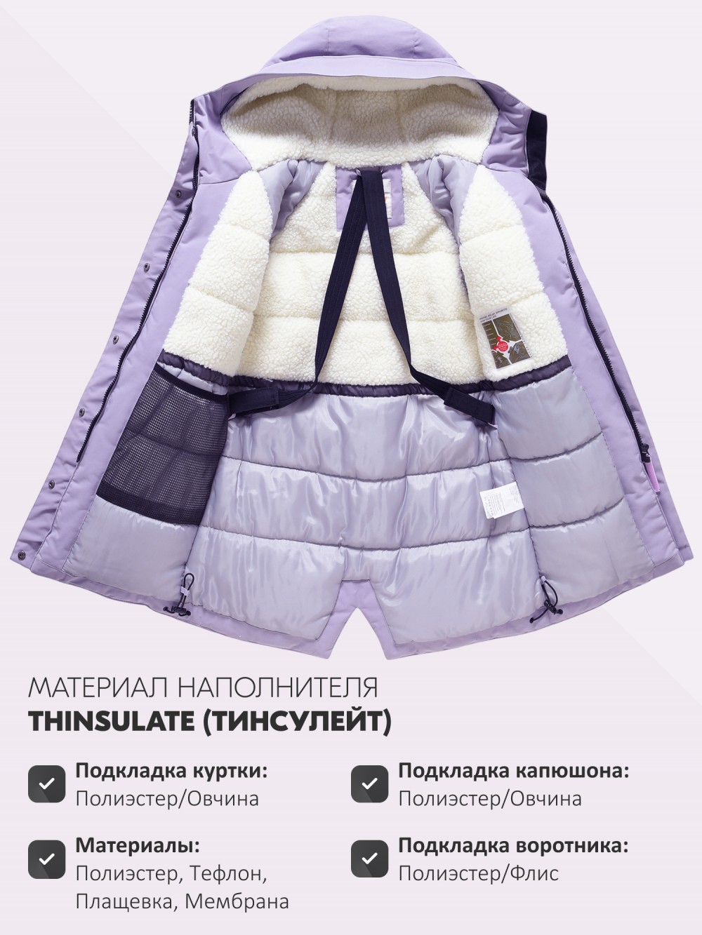 Парка зимняя подростковая для девочки с капюшоном сиреневого цвета 9538Sn