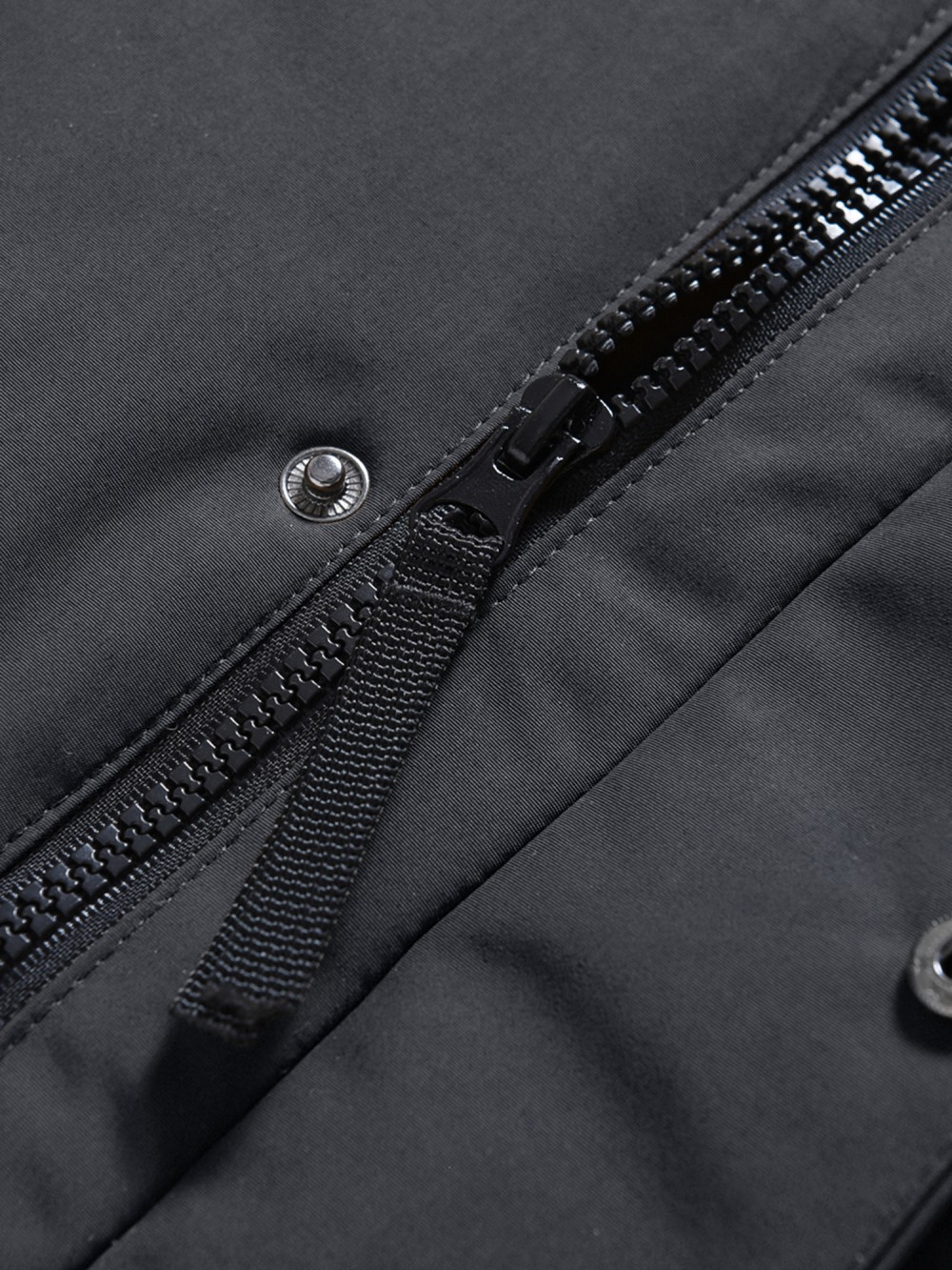 Внутренняя подкладка из овчины, полиэстера и флиса делает модель особенно уютной и приятной к телу. Капюшон несъёмный, он плотно прилегает и надёжно защищает голову в непогоду. Стояче-отложной воротник прикрывает шею и обеспечивает дополнительную защиту от ветра.
