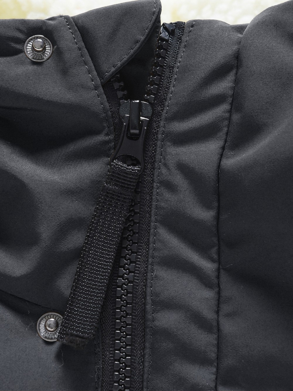 На рукавах и капюшоне предусмотрены регулируемые фиксаторы, которые позволяют удерживать тепло и подстраивать посадку под ребёнка. Манжеты из трикотажа не пропускают холодный воздух, сохраняя руки в тепле. Двойная молния с клапаном на кнопках надёжно закрывает парку и предотвращает продувание.
