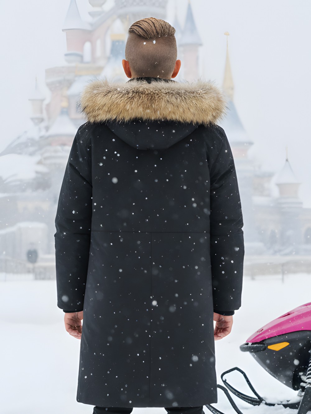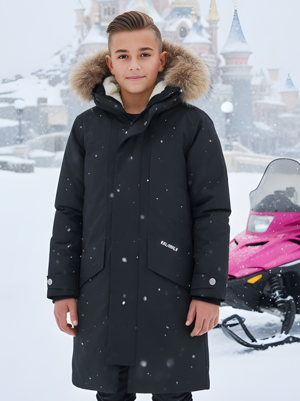 Эта парка станет идеальным выбором для родителей, которые ищут практичную и тёплую зимнюю одежду для мальчика-подростка, сочетая функциональность, современный дизайн и статусный акцент натурального меха енота.