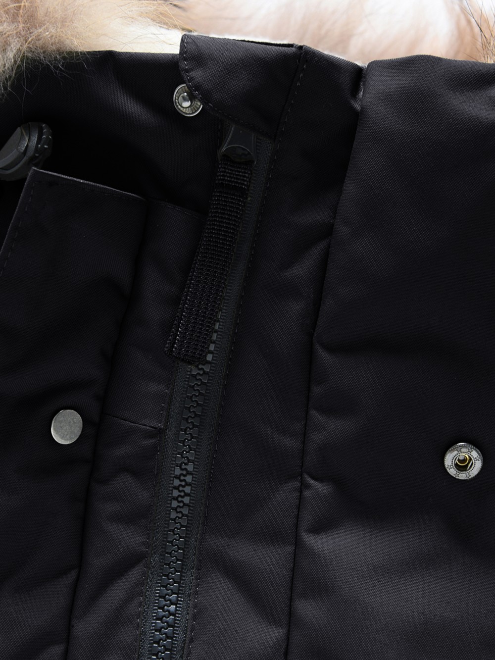 На рукавах и капюшоне предусмотрены регулируемые фиксаторы, которые позволяют плотно затянуть парку и удерживать тепло. Манжеты из трикотажа не пропускают холодный воздух. Двойная молния с ветрозащитной планкой на кнопках надёжно блокирует продувание.