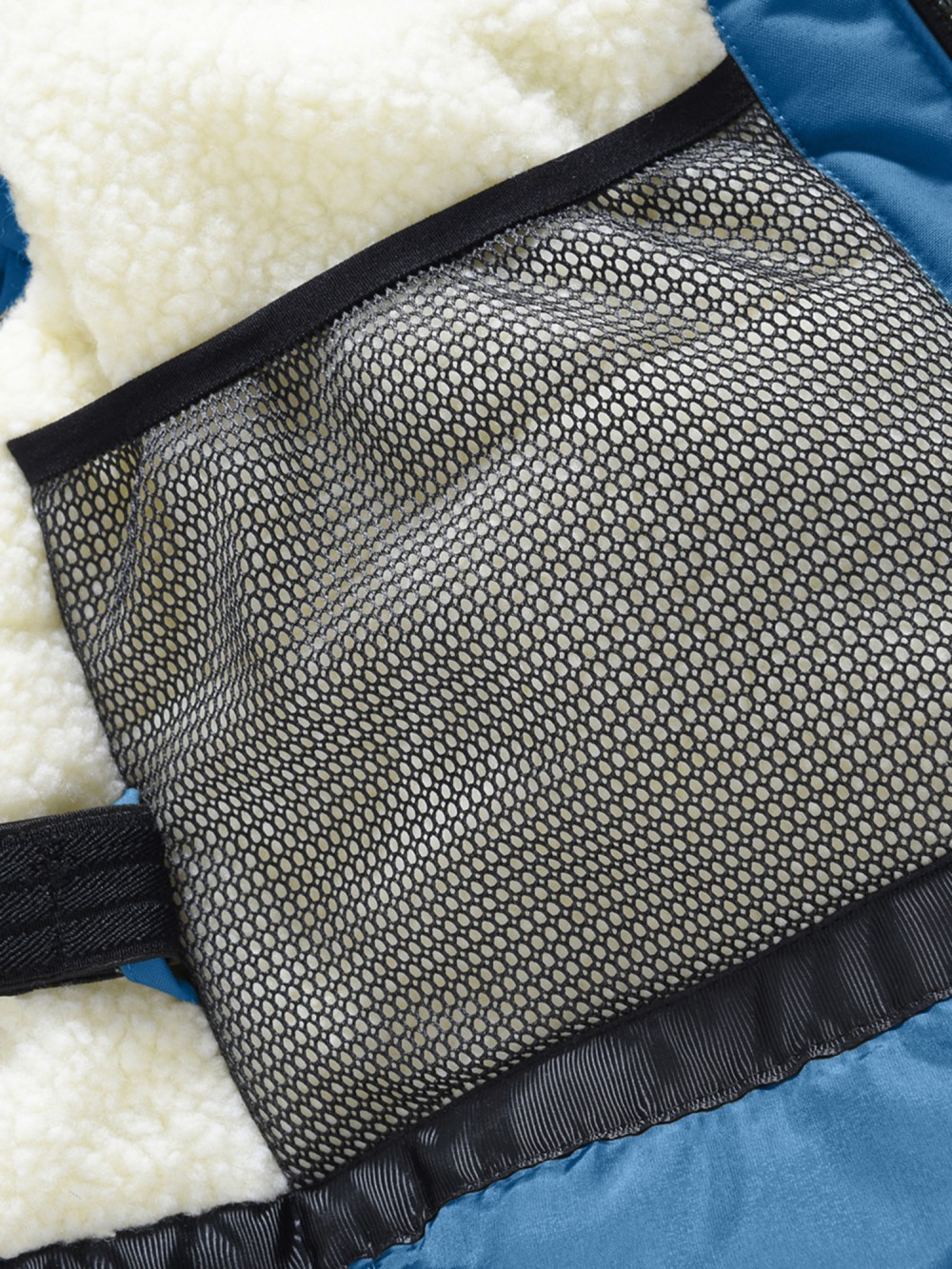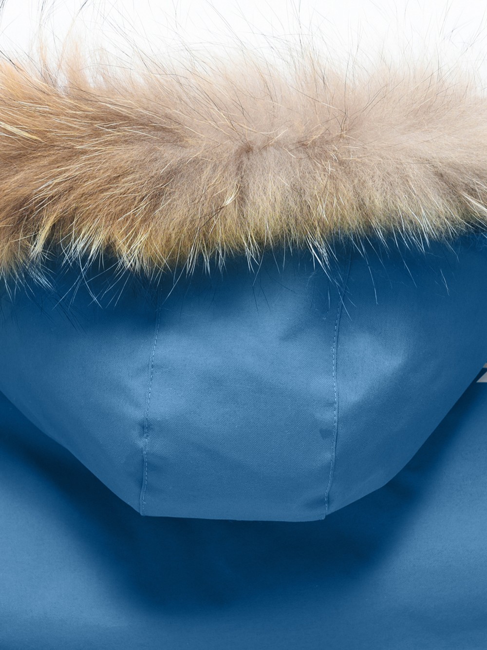 Внутренняя подкладка из овчины, полиэстера и флиса делает парку особенно уютной и приятной к телу. Тёплый капюшон с натуральным мехом енота надёжно защищает от снега и ветра, а опушка на молнии при желании легко снимается. Стояче-отложной воротник прикрывает шею и даёт дополнительную защиту в непогоду.