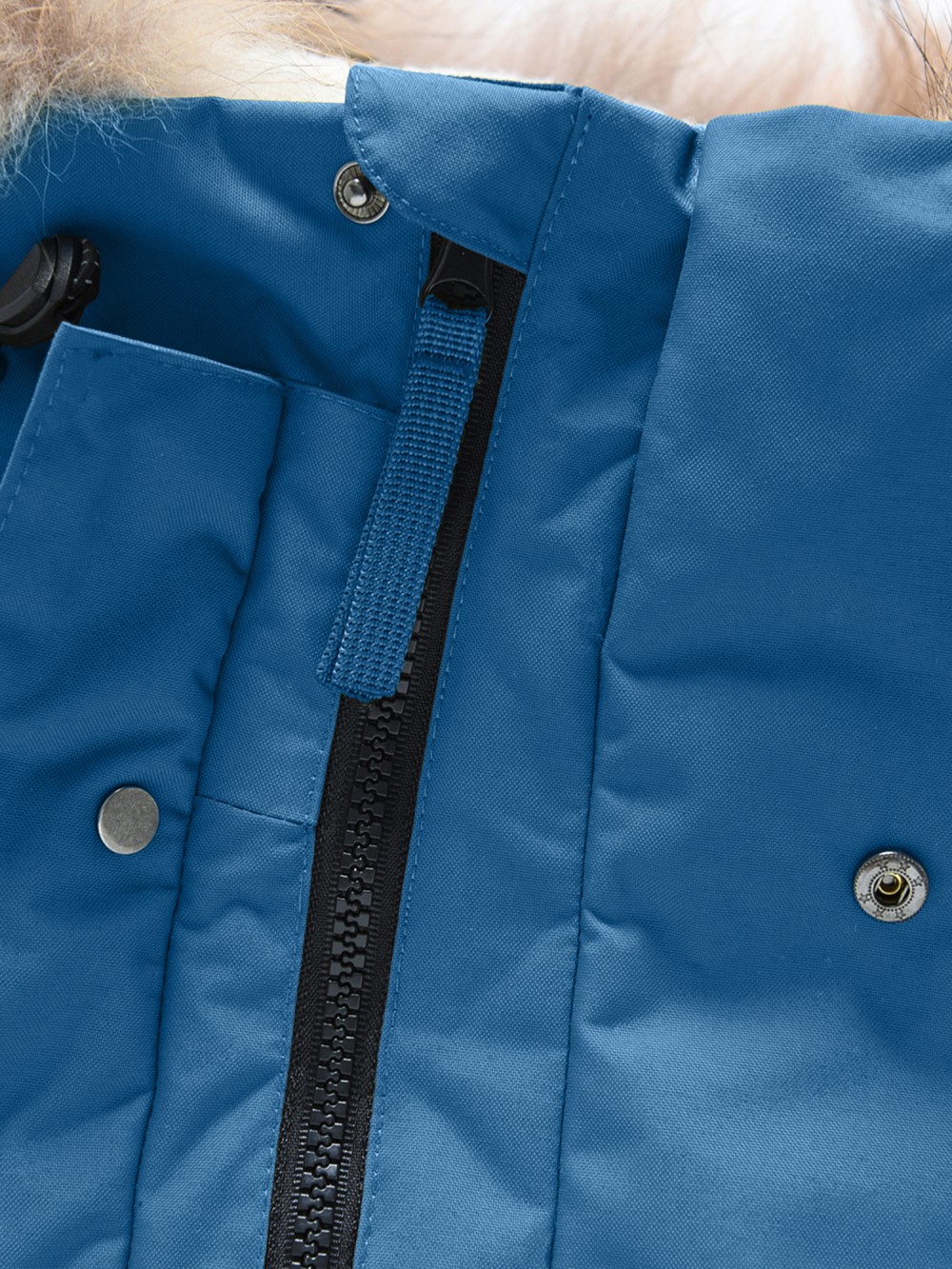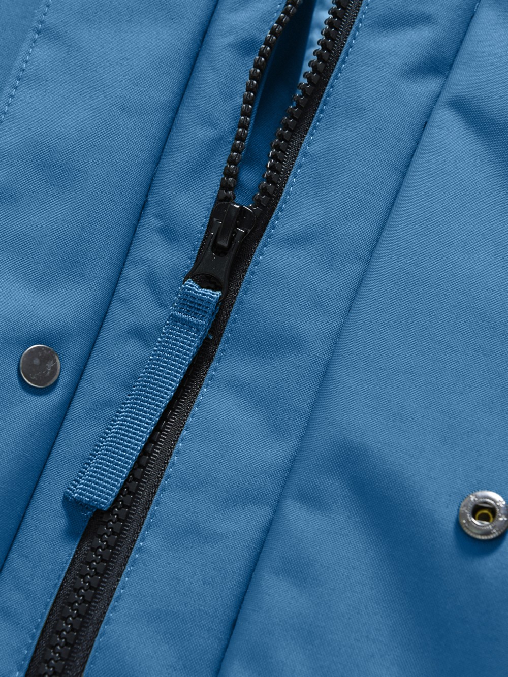 На рукавах и капюшоне предусмотрены регулируемые фиксаторы, которые позволяют плотно затянуть парку и удерживать тепло. Манжеты из трикотажа не пропускают холодный воздух. Двойная молния с ветрозащитной планкой на кнопках надёжно блокирует продувание.