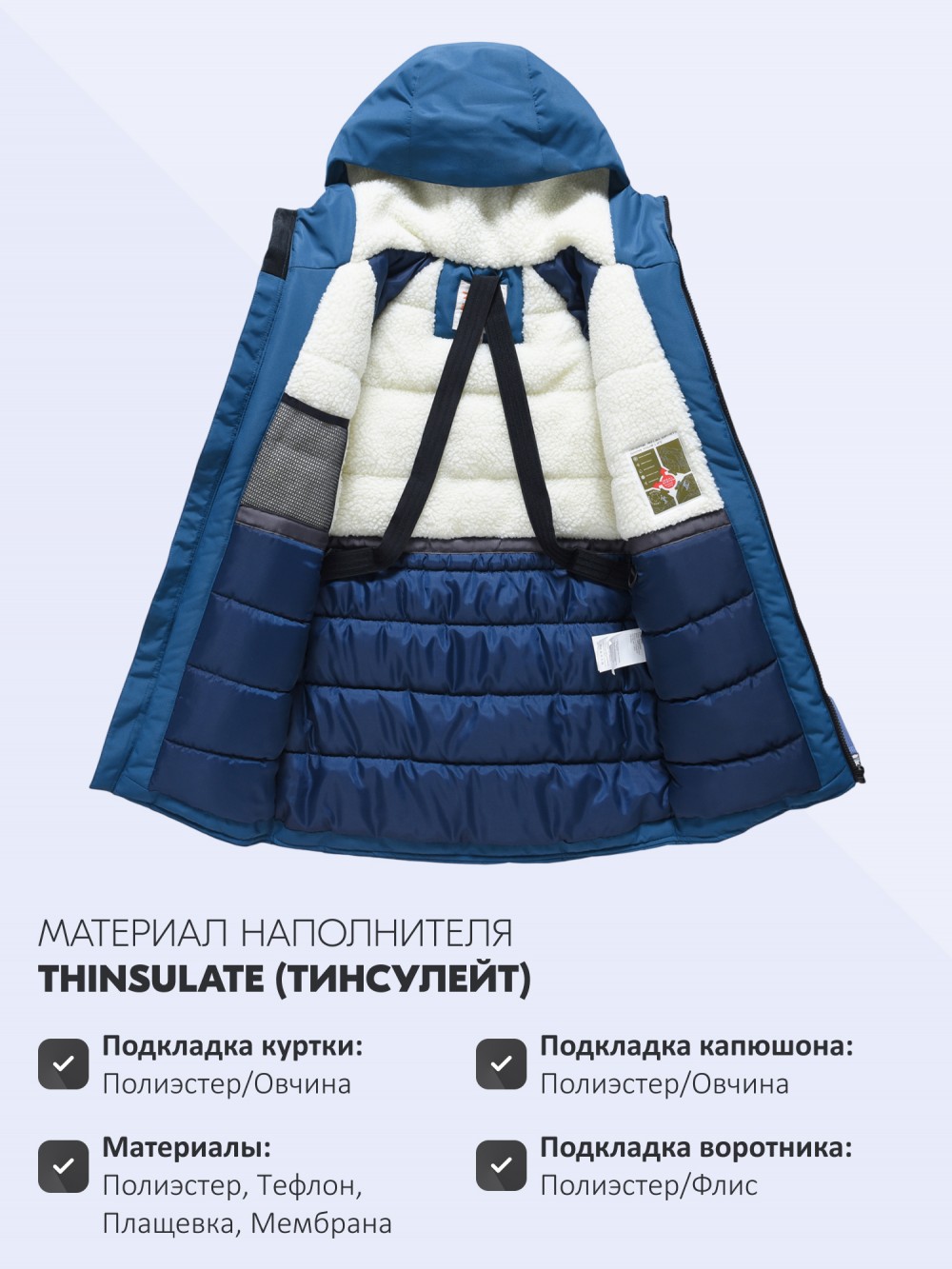 фиксаторы на рукавах (пат с липучкой) и трикотажные манжеты удерживают тепло внутри.