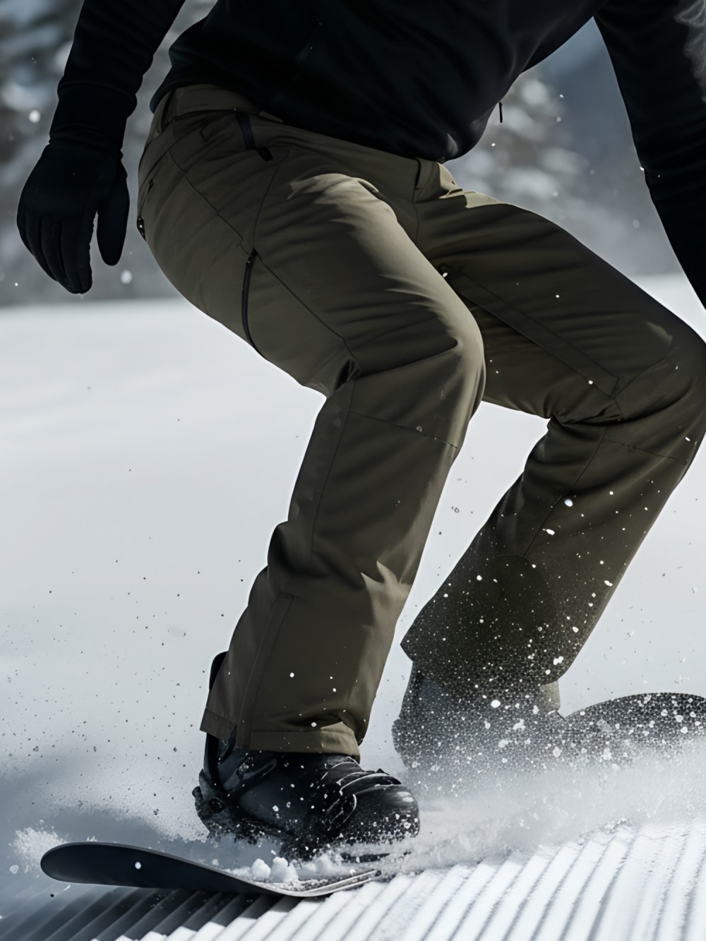 разрез внизу горнолыжных брюк позволяет легко оправить штанину поверх горнолыжного ботинка. Во всех горнолыжных брюках имеются снегозащитные гамаши плотно обхватывающая ботинок, которые защищают от проникновения снега и холода.