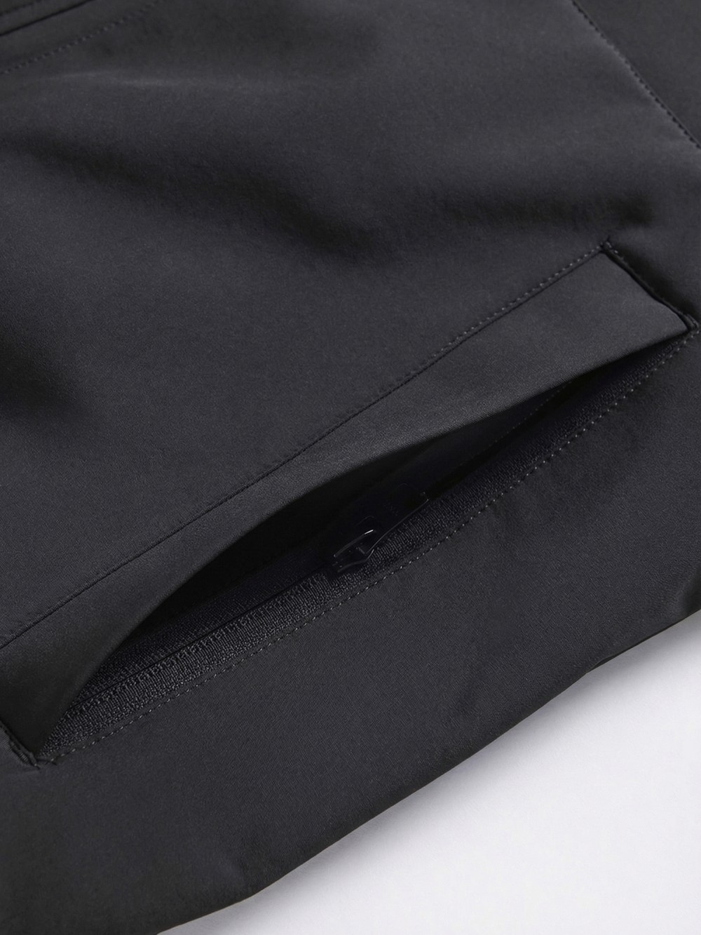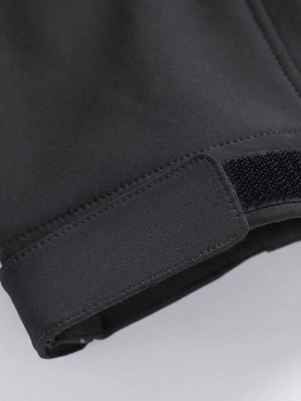 Верх выполнен из плотной технологичной ткани софтшелл с эффектом виндстоппера. Материал эффективно защищает от ветра, отталкивает влагу и при этом сохраняет хорошую воздухопроницаемость. Благодаря эластичности ткани куртка комфортно сидит по фигуре и не сковывает движения.