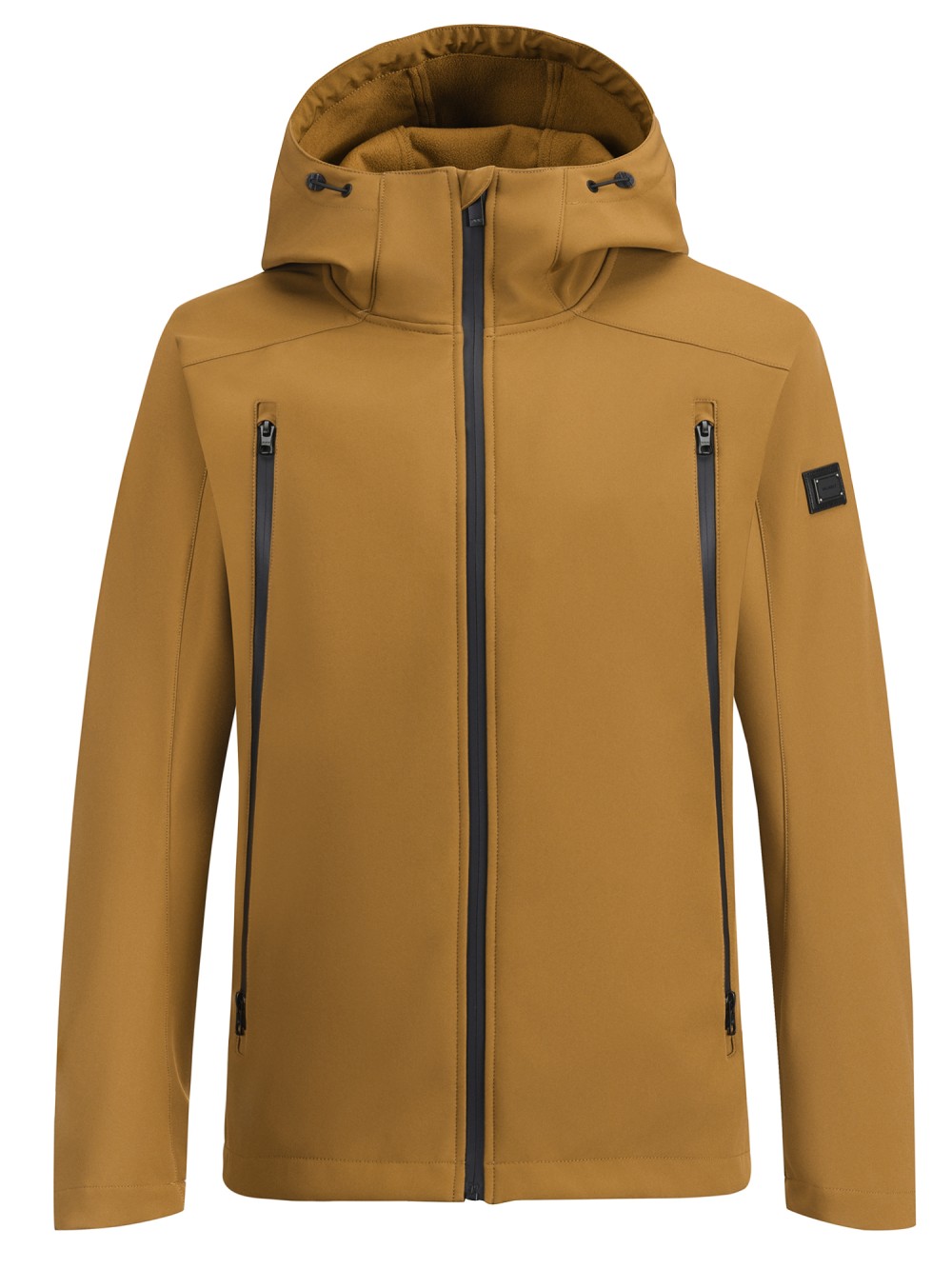 Ветровка мужская софтшелл виндстоппер с капюшоном спортивная горчичного цвета 9613_1G