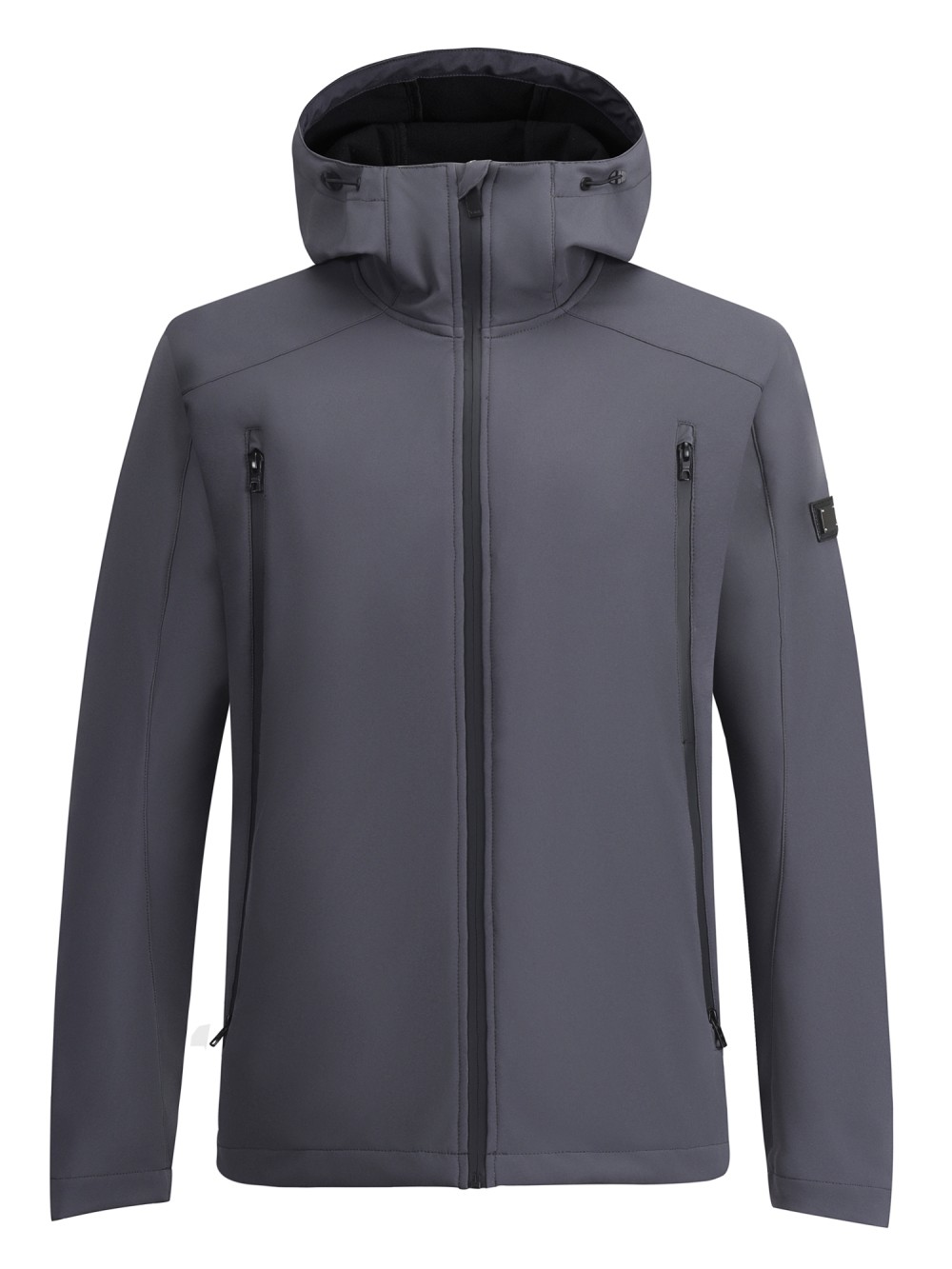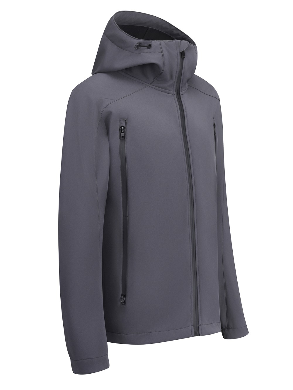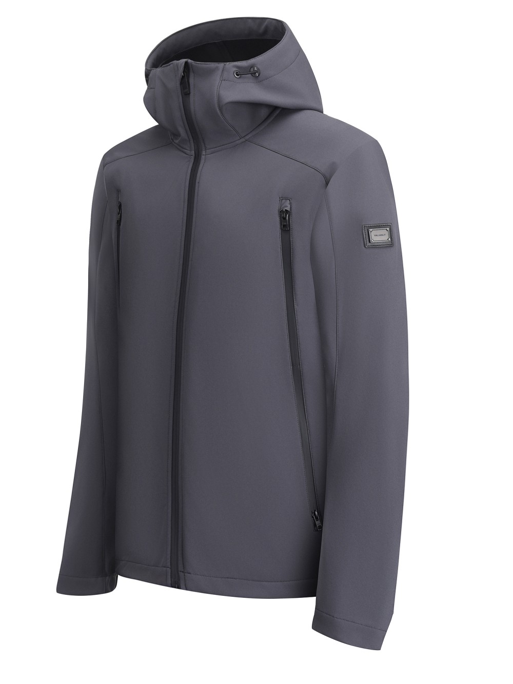 Ветровка мужская софтшелл виндстоппер с капюшоном спортивная темно-серого цвета 9613_1TC