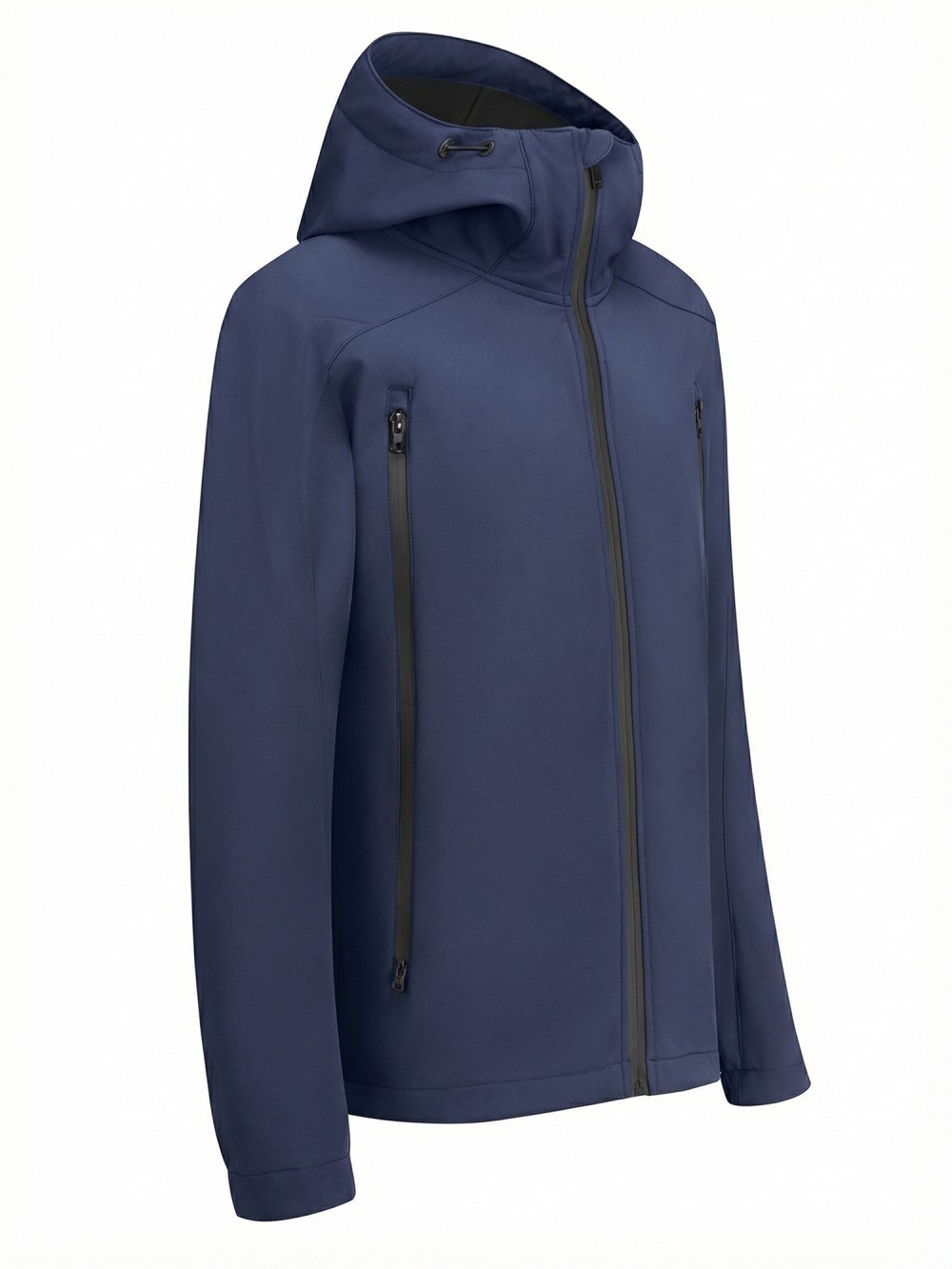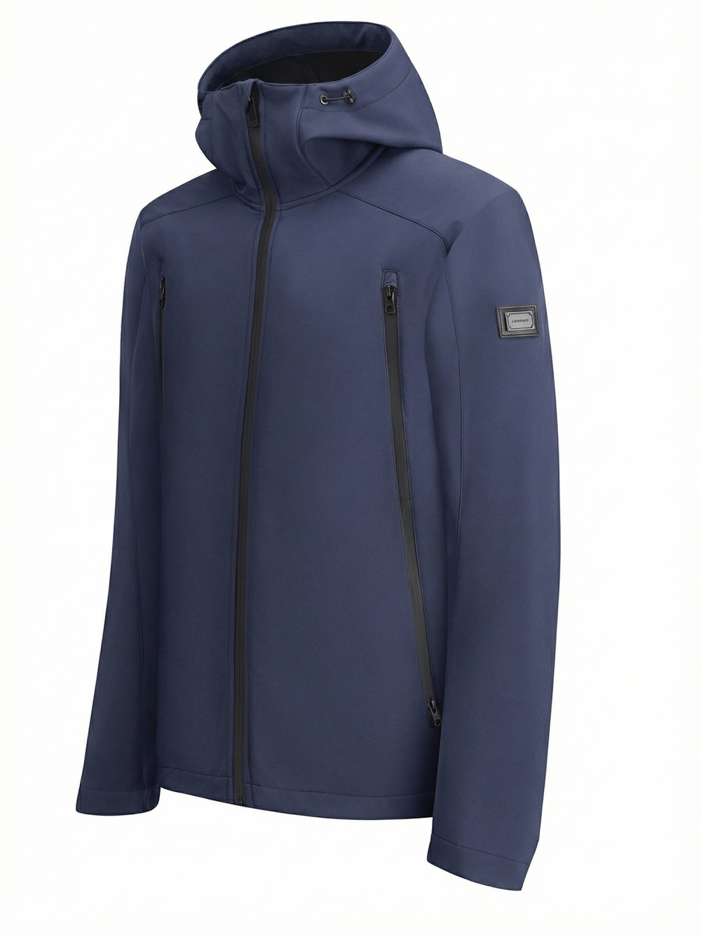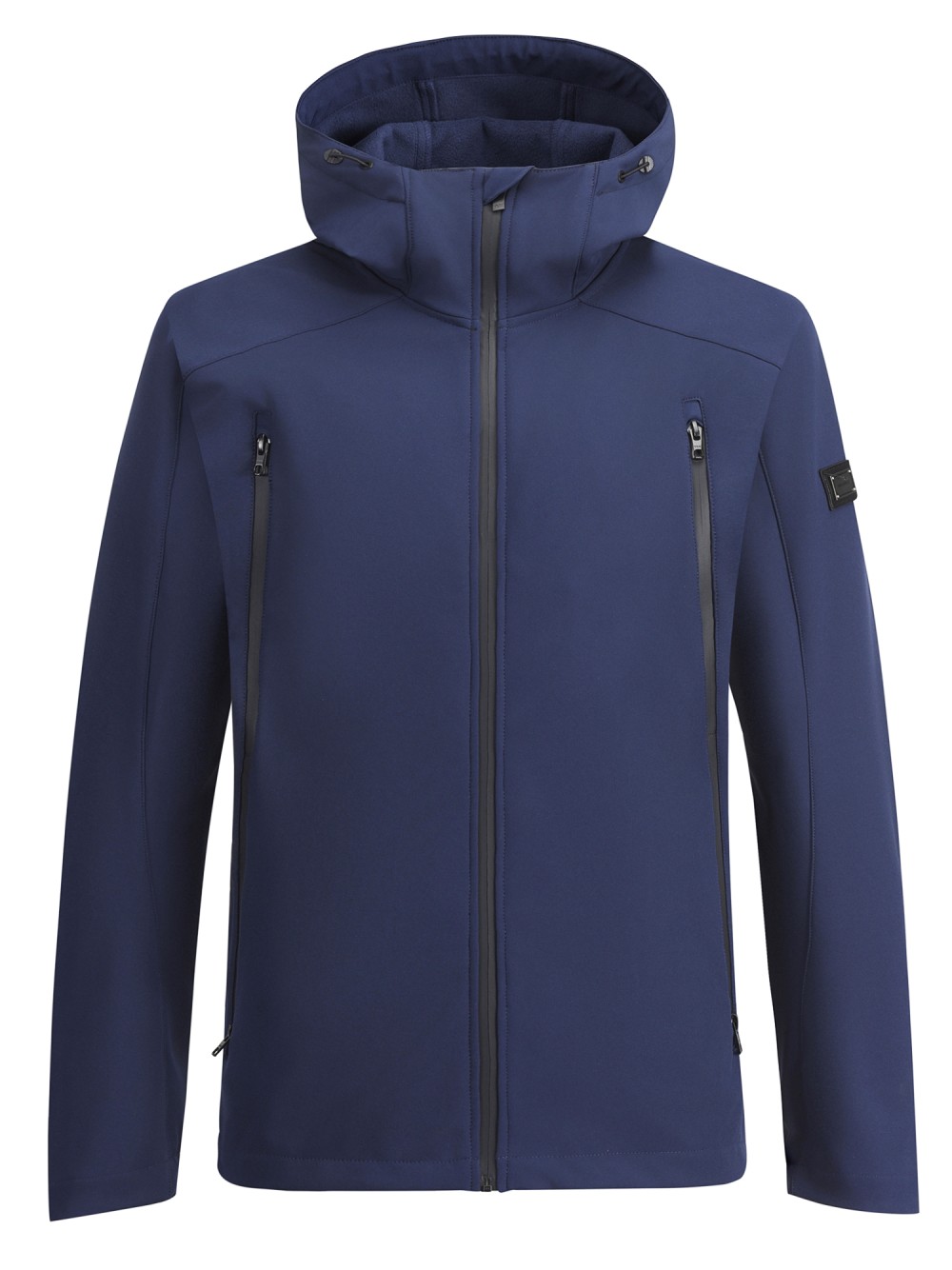 Ветровка мужская софтшелл виндстоппер с капюшоном спортивная темно-синего цвета 9613_1TS