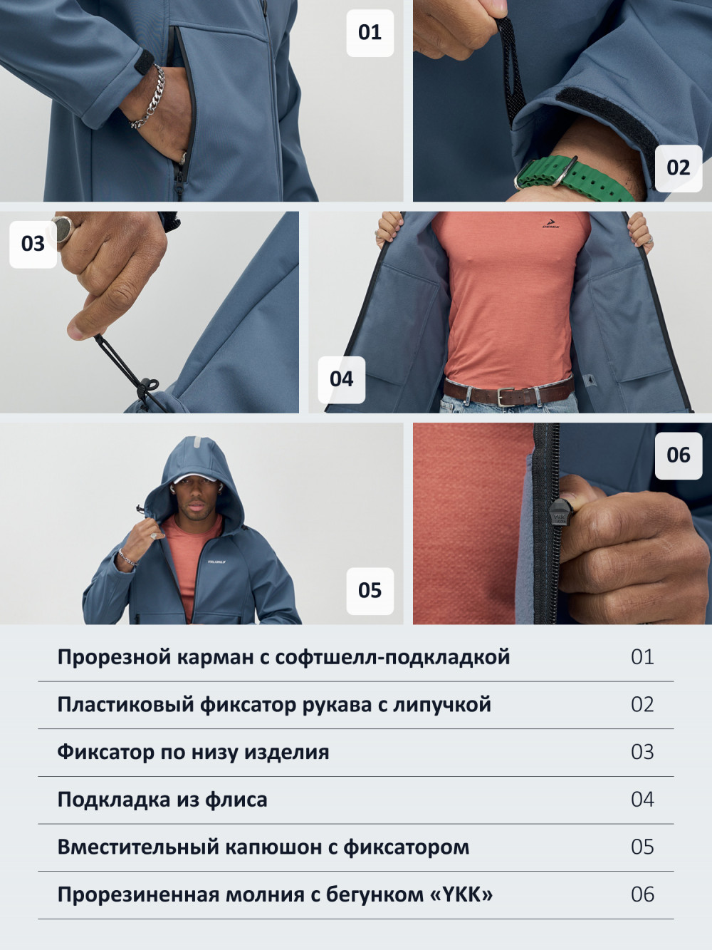 - Softshell – легкий и эластичный, обеспечивает отличную защиту от ветра и влаги.