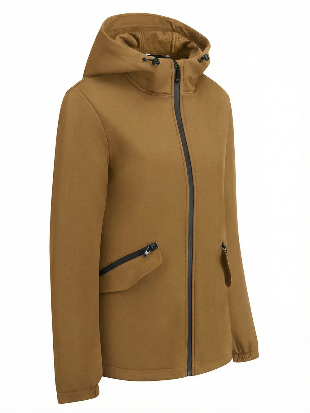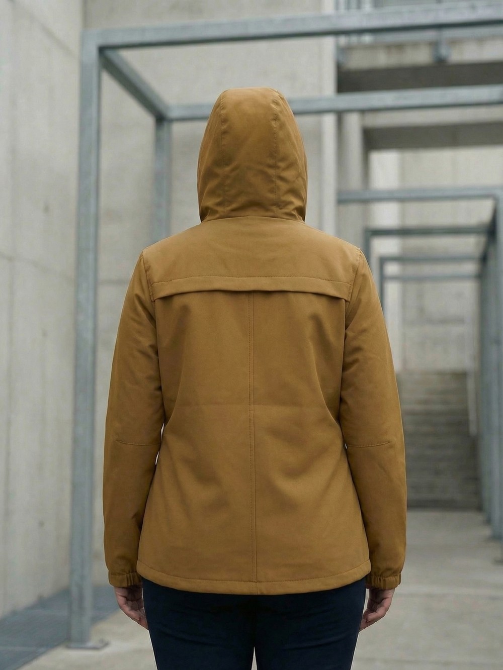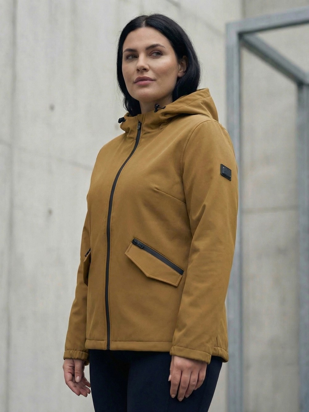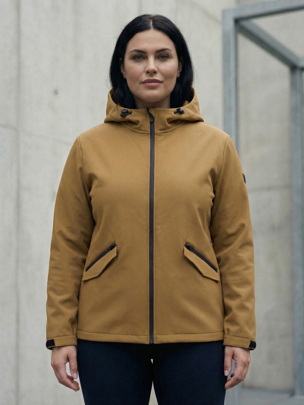 Ветровка женская софтшелл большого размера с капюшоном ветрозащитная горчичного цвета 9620_1G