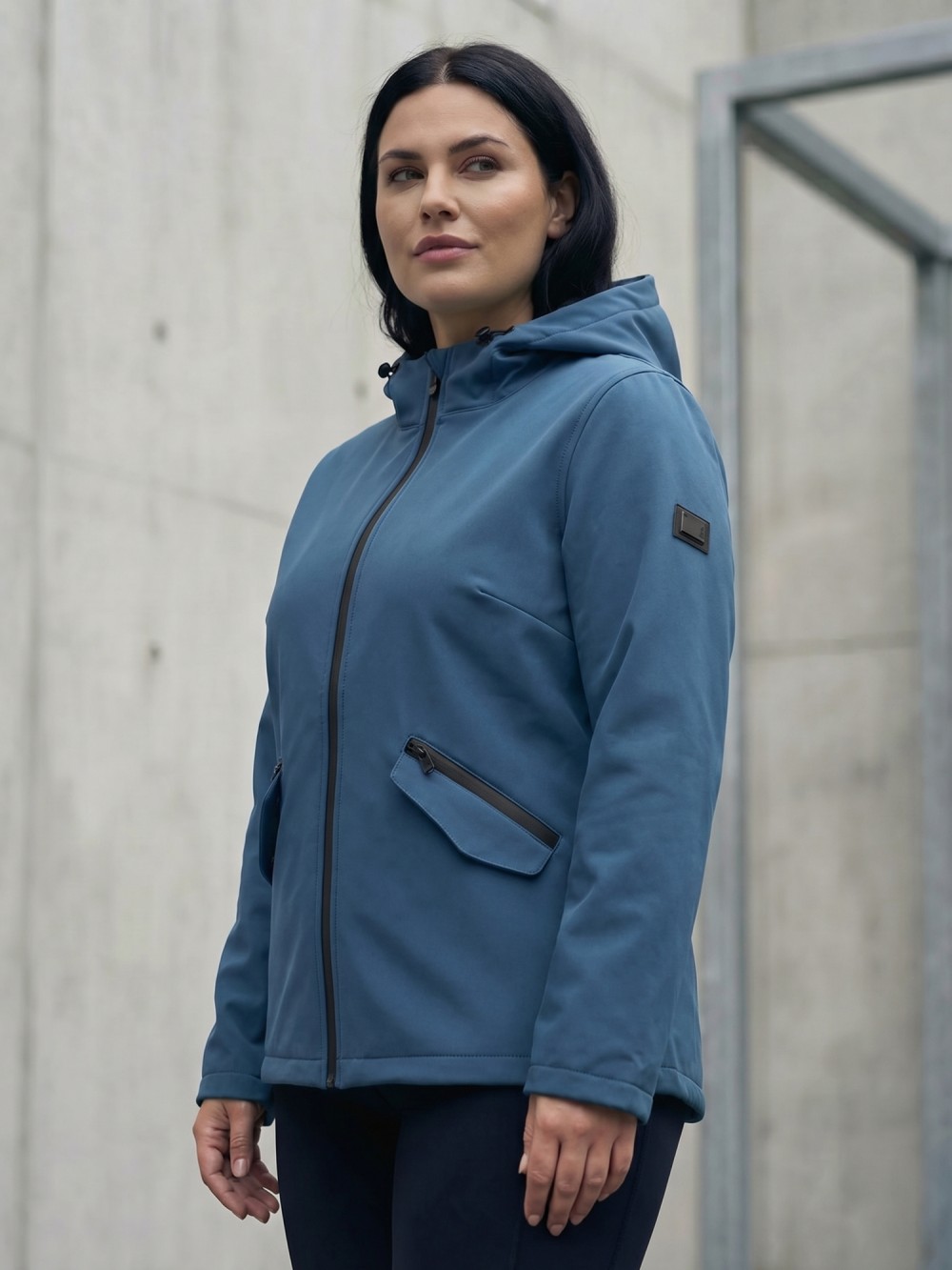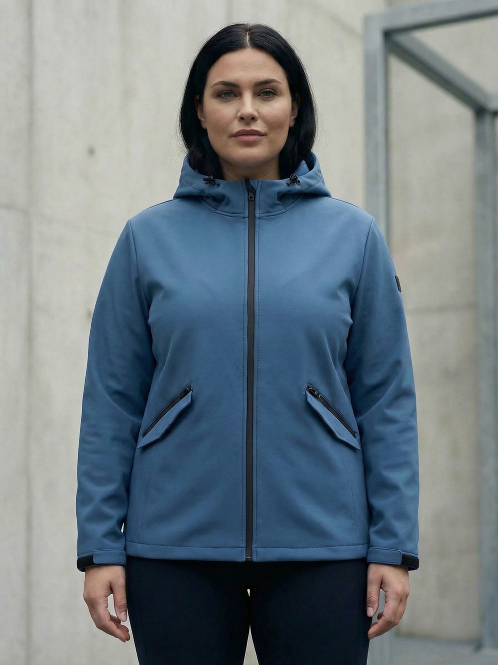 Ветровка женская софтшелл большого размера с капюшоном ветрозащитная синего цвета 9620_1S