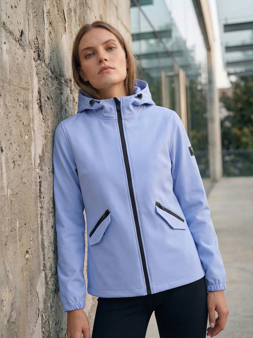 Ветровка женская софтшелл виндстоппер с капюшоном спортивная голубого цвета 9612_1Gl